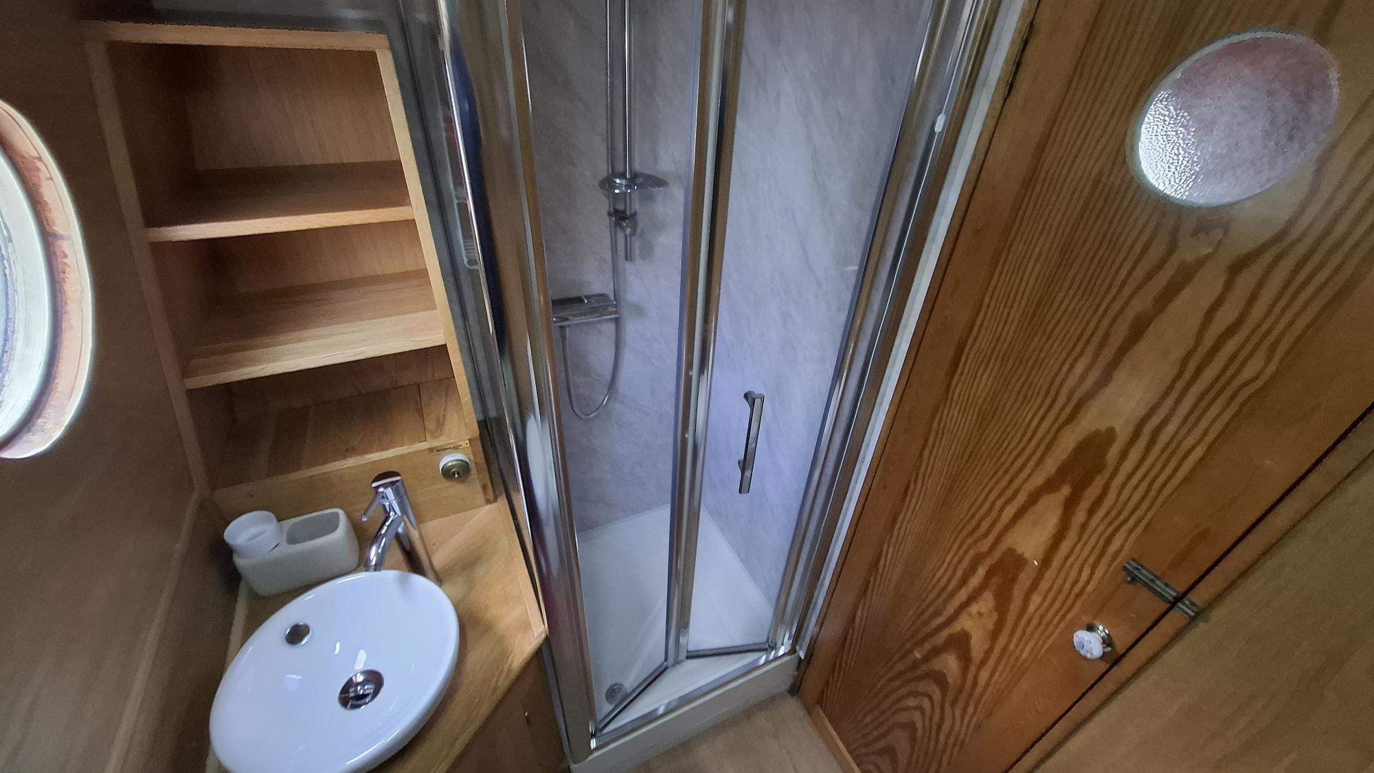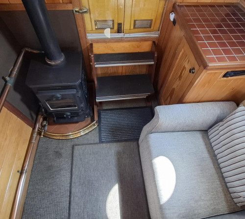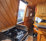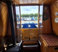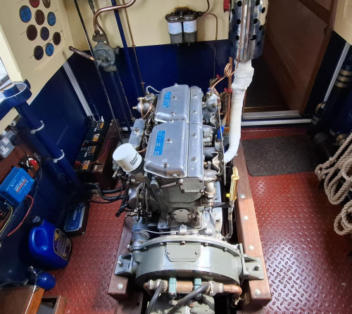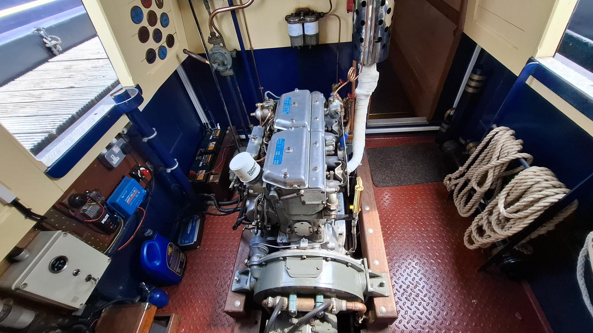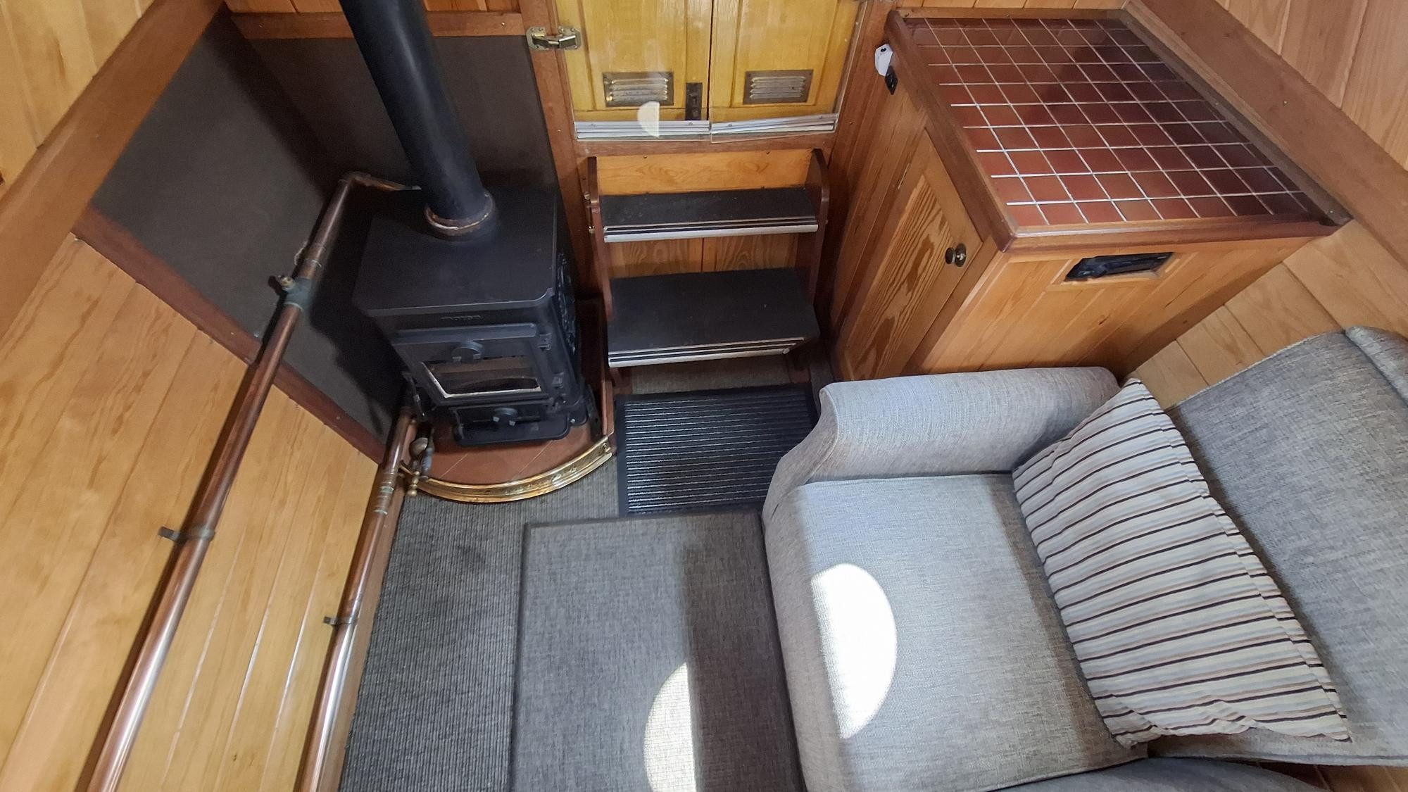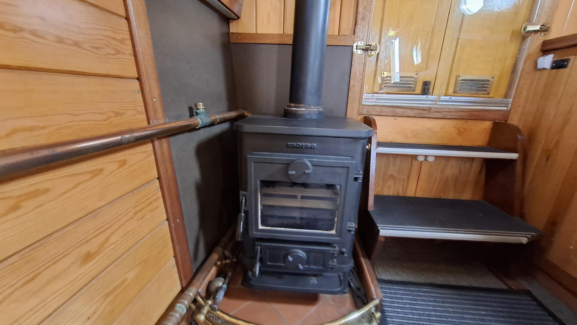 Powered by a reliable Gardner 4LK engine with PRM 260 gearbox (recon 2012). Spacious layout with varnished pine fit-out, Morso Squirrel stove with back boiler, and twin coil calorifier for hot water. Accommodation sleeps up to 6. Galley with gas hob, oven, fridge; bathroom with cassette toilet and shower. Steel 1000L water tank, 120-gallon fuel tank plus day tank. Electricals include 24V system, 300W inverter, shore power, and galvanic isolator. Blacked June 2024. Boat Safety to 2029.