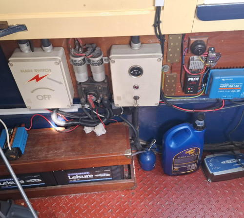 Batteries: x2 Domestic 110Ah connected in series to give 24v 2x starter 8-Ah also in series