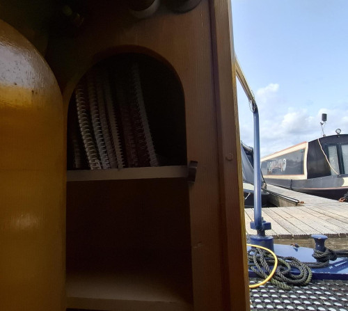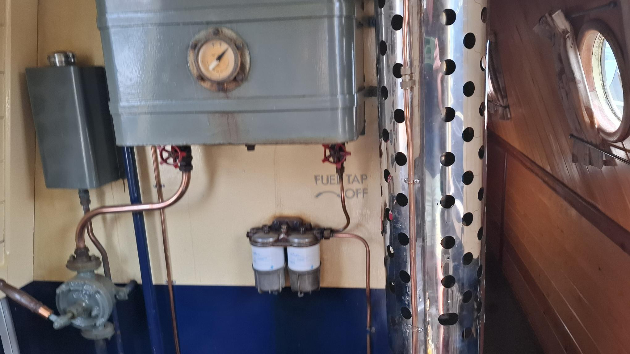 • Two 13kg Calor propane bottles (port side bottle empty, starboard bottle part used).