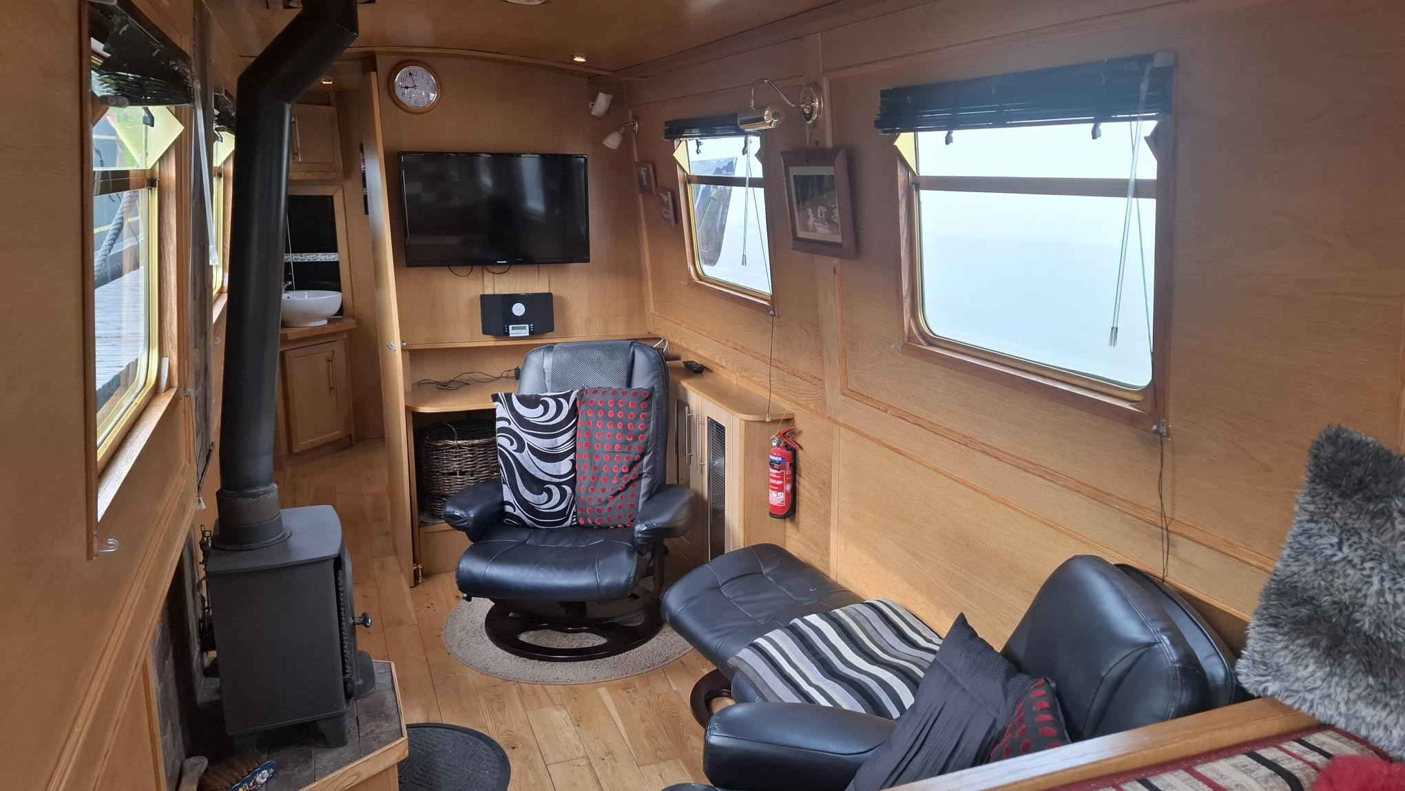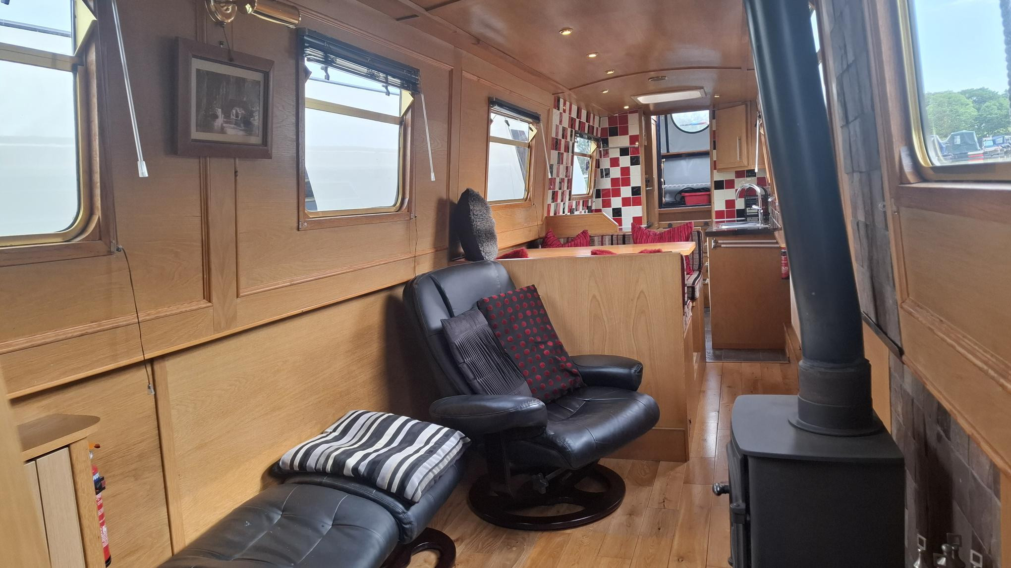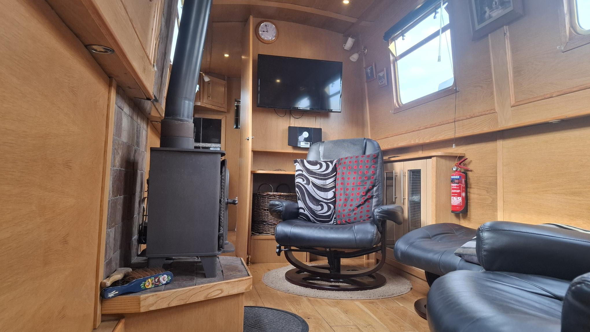 A Vetus 42hp engine, Webasto heating, and Stovax stove ensure comfort year-round. Practical features include a washing machine, full galley, and Jabsco pump-out toilet. Recently blacked and engine-serviced, with a Boat Safety Certificate to October 2025. A standout feature is the stunning full repaint by Overwater Marina and sign written by renowned painter Andy Russell in 2024.