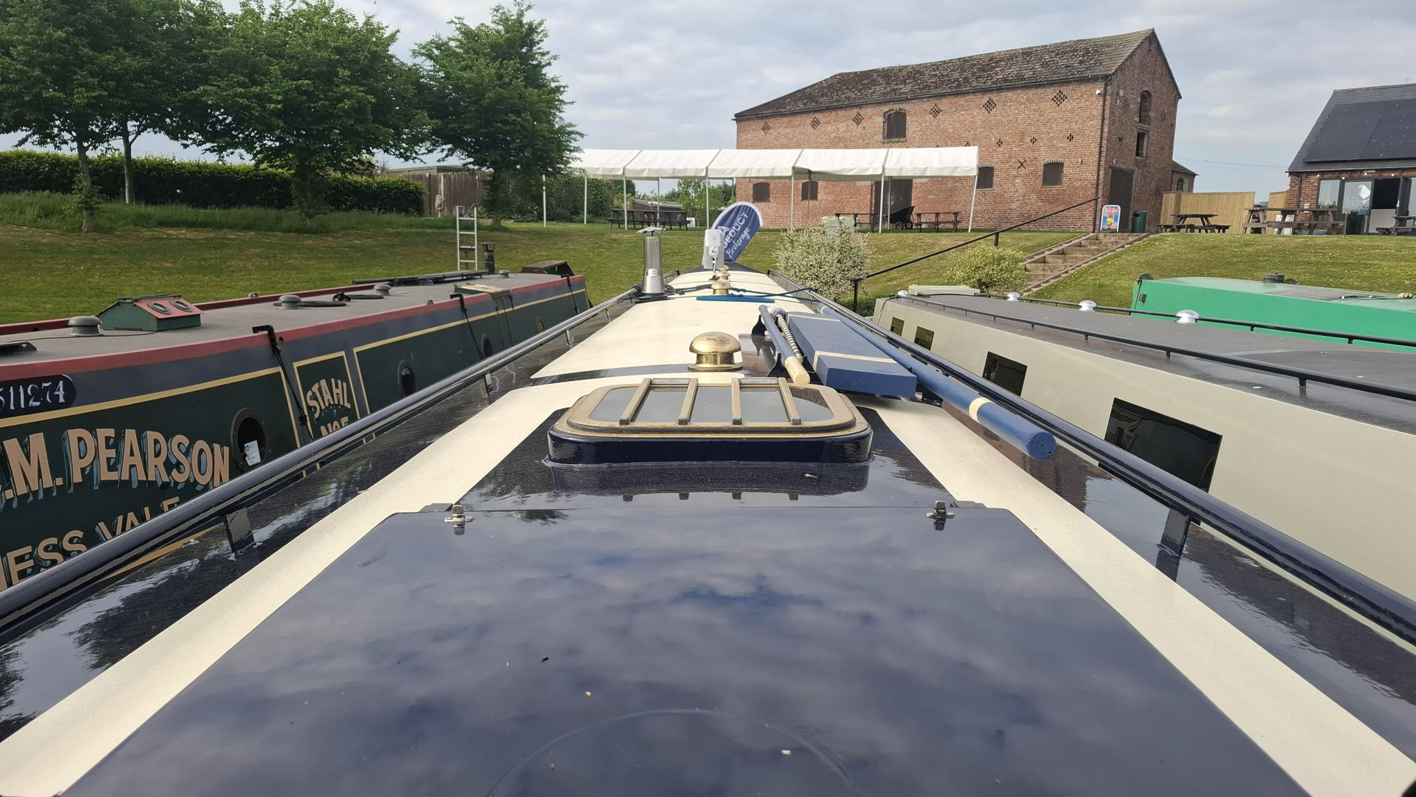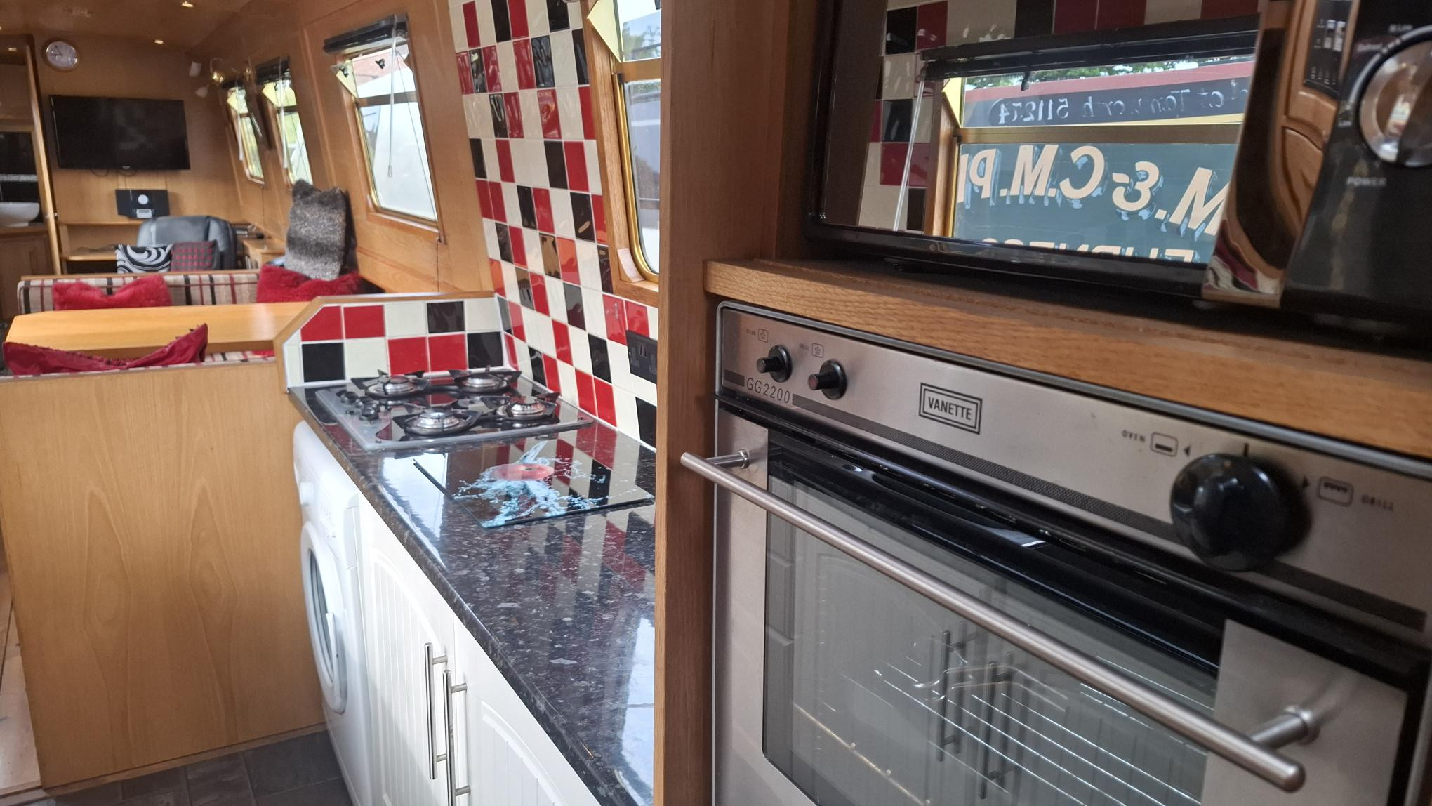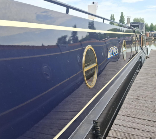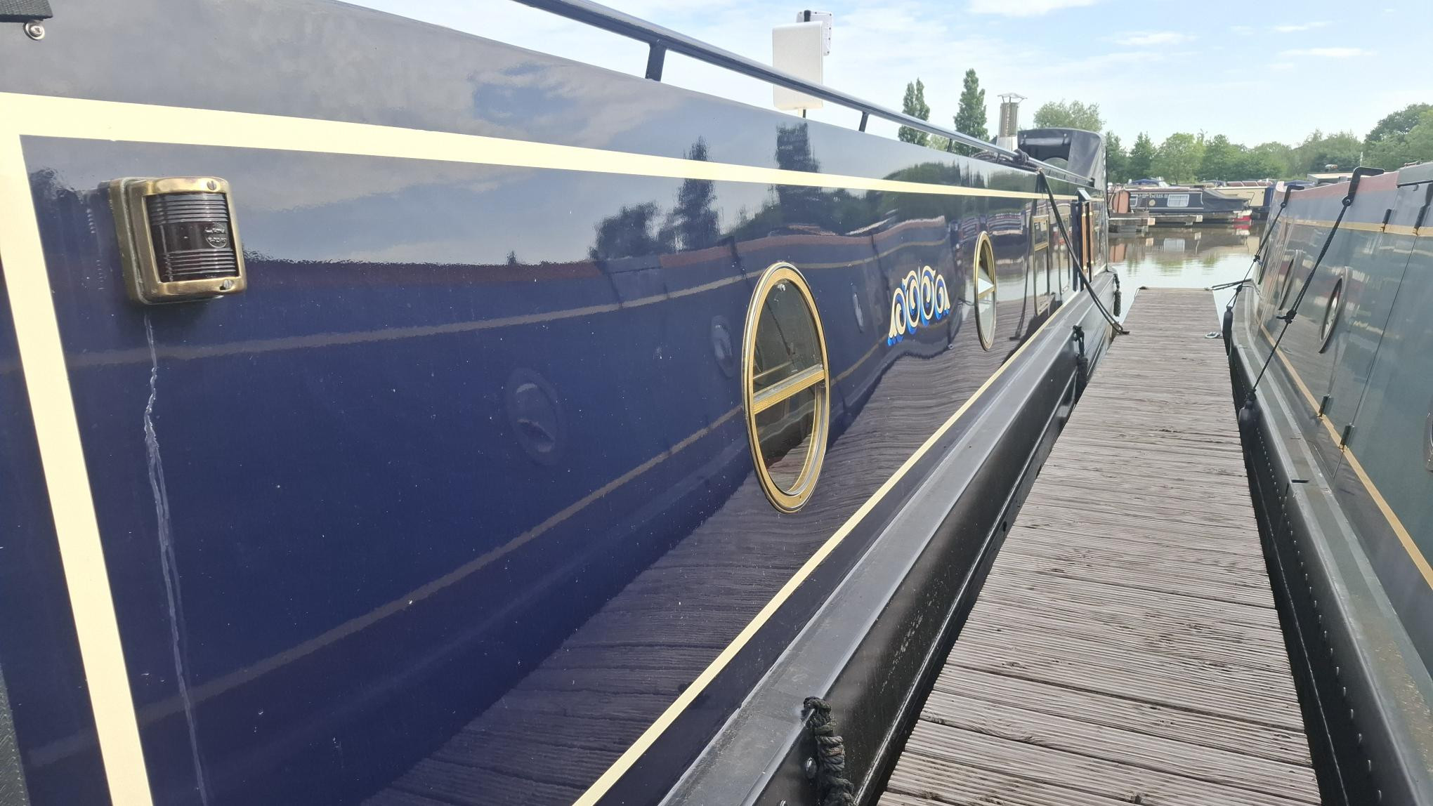 A Vetus 42hp engine, Webasto heating, and Stovax stove ensure comfort year-round. Practical features include a washing machine, full galley, and Jabsco pump-out toilet. Recently blacked and engine-serviced, with a Boat Safety Certificate to October 2025. A standout feature is the stunning full repaint by Overwater Marina and sign written by renowned painter Andy Russell in 2024.