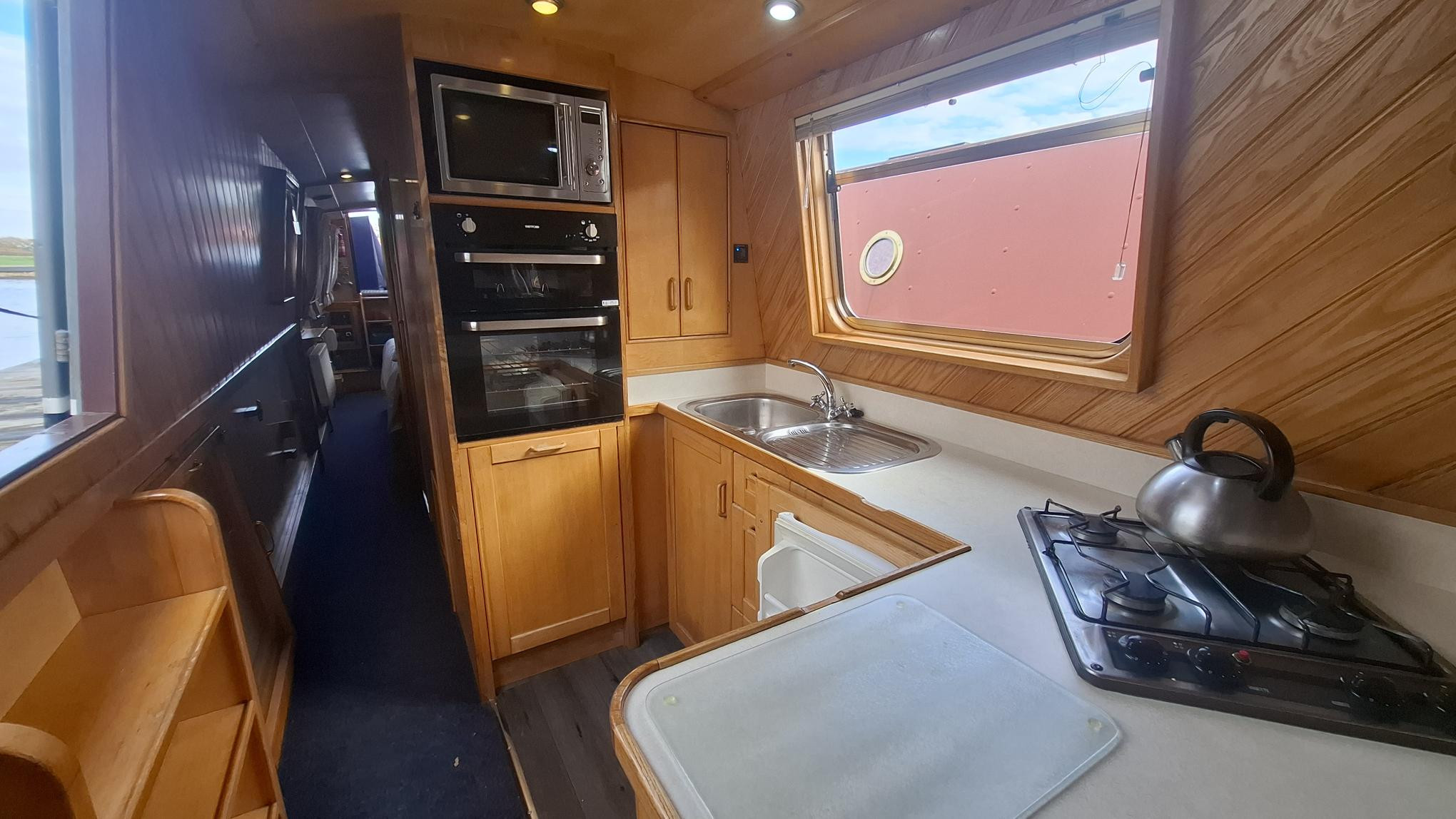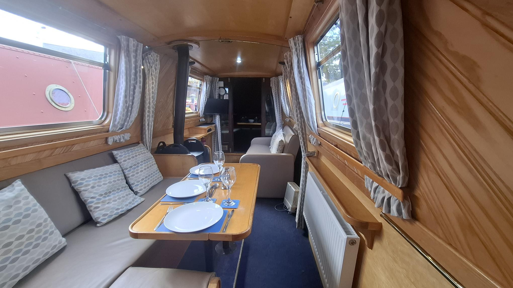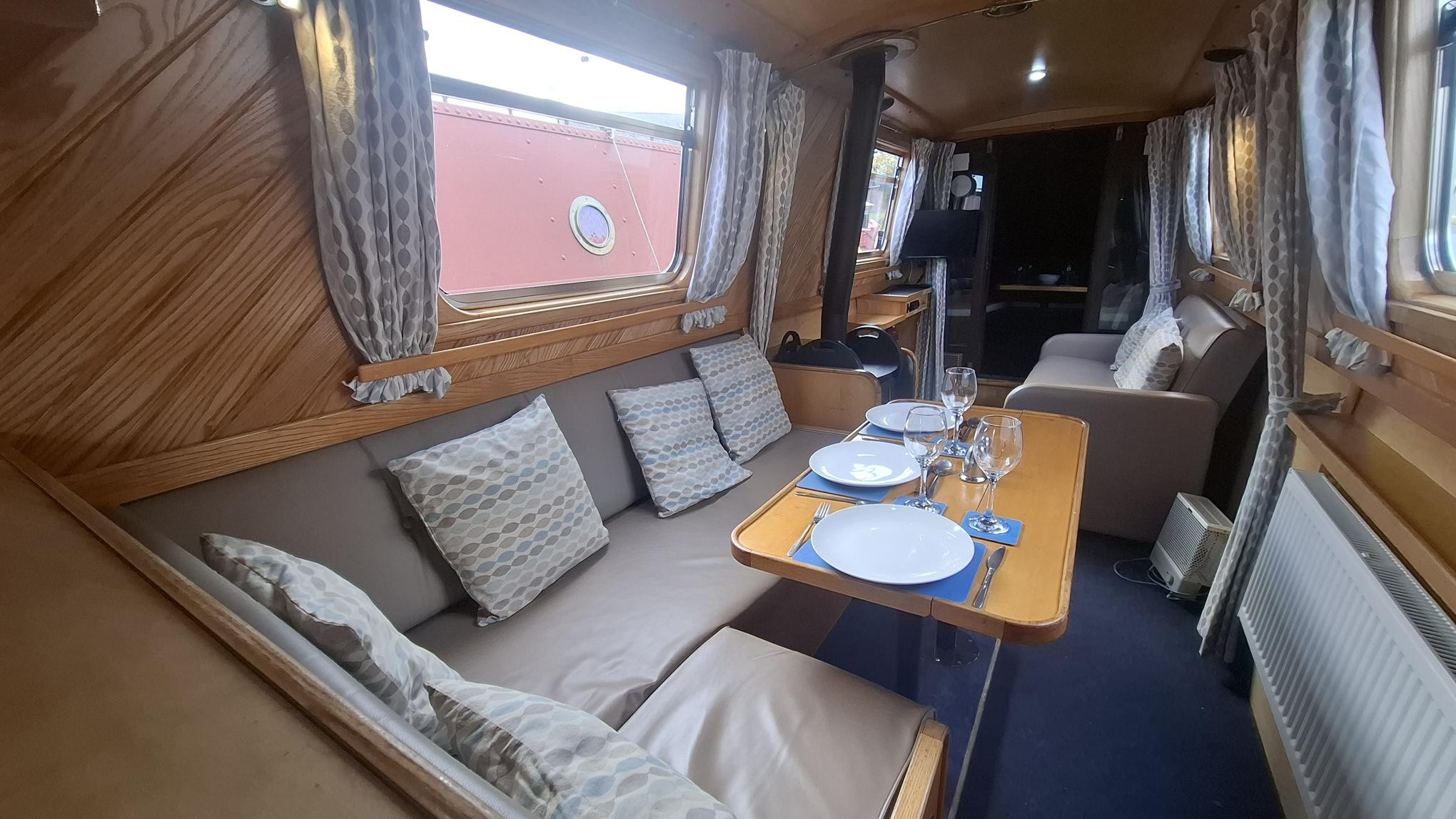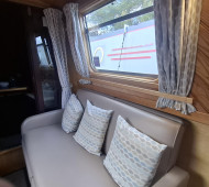 A beautifully presented 58ft Semi-Traditional narrowboat built and fitted out by the highly regarded Milburn Boats. Repainted by Andy Russell in 2022, her elegant light grey, dark blue, and red livery complements a stylish ash and maple interior. The layout offers versatile sleeping for six, with a comfortable saloon, L-shaped dinette, and well-equipped galley featuring gas cooking, microwave, and fridge/freezer. Heating is by multi-fuel stove and Webasto central heating, with hot water from a 30-gallon calorifier. Powered by a reliable Nanni 4.200kc engine and hydraulic bow thruster, she handles beautifully. Recent blacking (Dec 2024) and Boat Safety to Nov 2029 add confidence. With quality craftsmanship and thoughtful design throughout, this Milburn 58ft offers comfort, practicality, and style — a perfect liveaboard or cruising home.