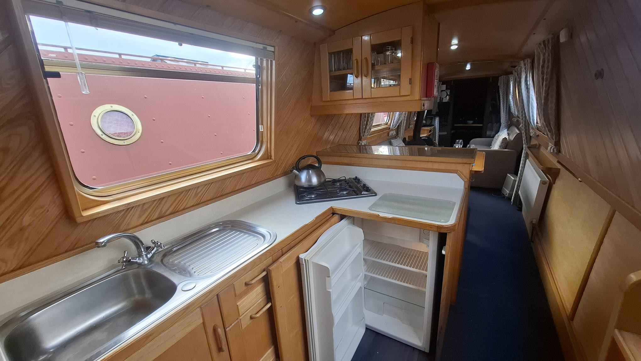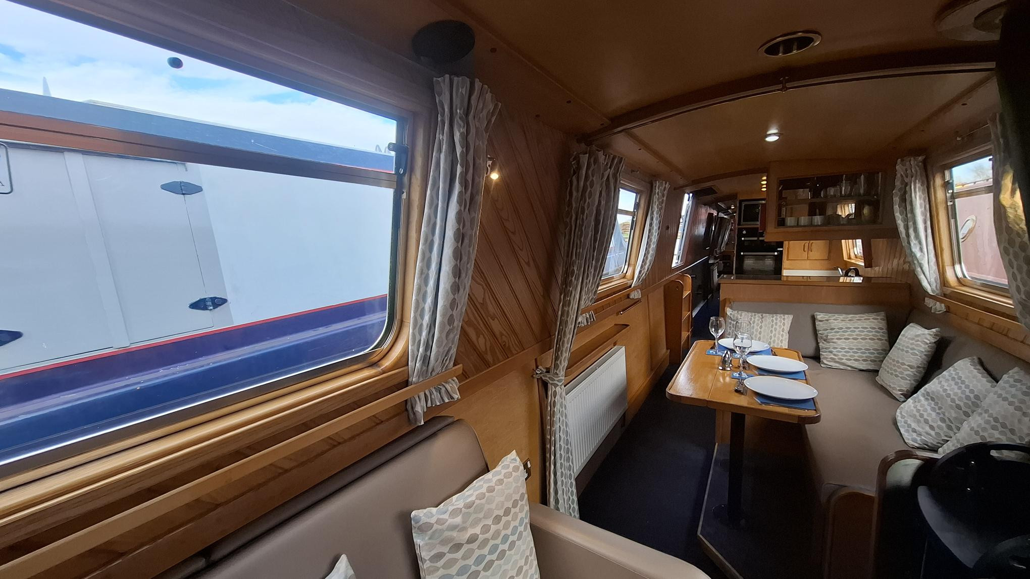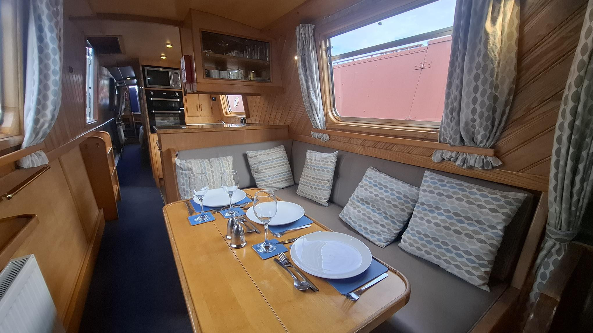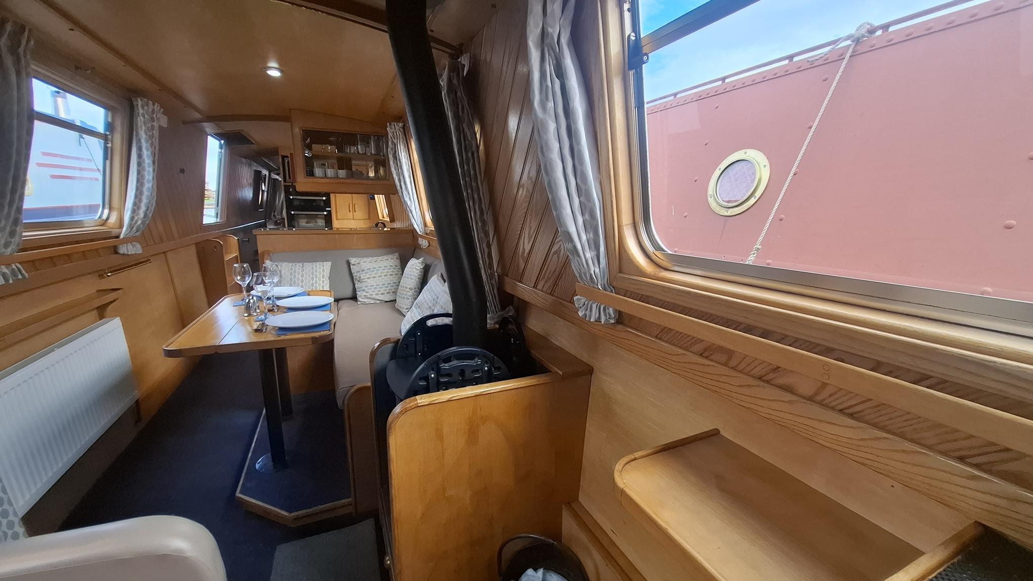 A beautifully presented 58ft Semi-Traditional narrowboat built and fitted out by the highly regarded Milburn Boats. Repainted by Andy Russell in 2022, her elegant light grey, dark blue, and red livery complements a stylish ash and maple interior. The layout offers versatile sleeping for six, with a comfortable saloon, L-shaped dinette, and well-equipped galley featuring gas cooking, microwave, and fridge/freezer. Heating is by multi-fuel stove and Webasto central heating, with hot water from a 30-gallon calorifier. Powered by a reliable Nanni 4.200kc engine and hydraulic bow thruster, she handles beautifully. Recent blacking (Dec 2024) and Boat Safety to Nov 2029 add confidence. With quality craftsmanship and thoughtful design throughout, this Milburn 58ft offers comfort, practicality, and style — a perfect liveaboard or cruising home.