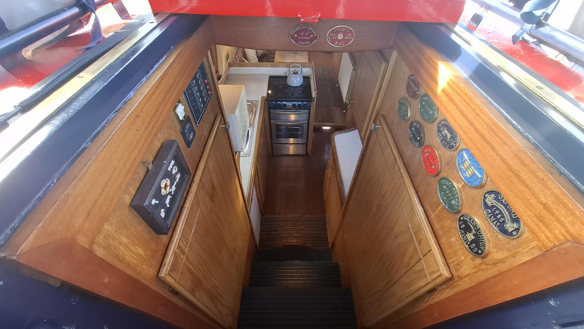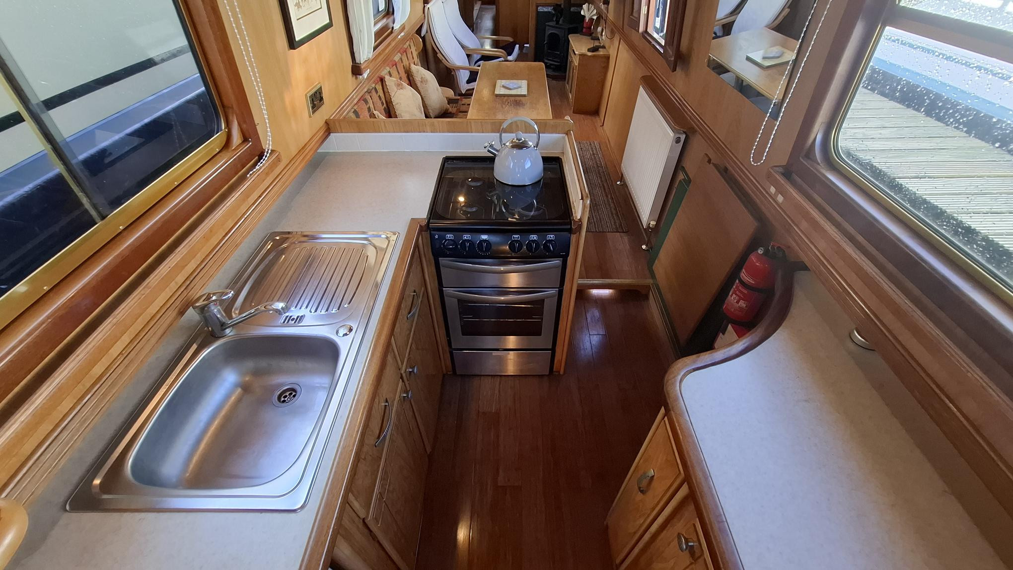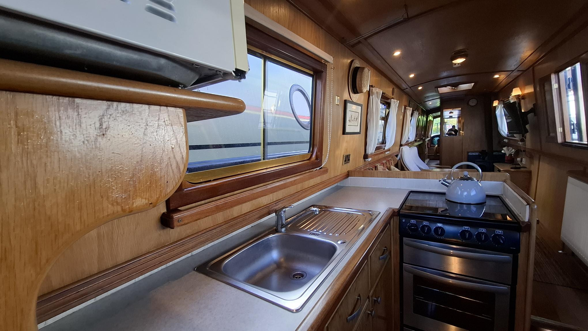 A beautifully presented 60ft semi-traditional narrowboat combining quality craftsmanship with modern liveaboard comfort. Powered by a reliable Beta 43 engine (3,320 hrs) with PRM gearbox, Vetus 55kgf bow thruster, and recent service including new drive plate. Stylish oak fit-out throughout with veneered oak flooring, spacious saloon, fully equipped galley, and dining for eight. Features include Stovax stove, Webasto central heating, Vetus pump-out toilet, and enclosed shower. Electrical setup boasts Victron 3kW inverter/charger, 2×200W solar panels, and new batteries (2023–24). Freshly blacked (Jan 2024) and BSC valid to April 2026. Finished in Mauritius Blue, Red & Cream – a superb, ready-to-cruise boat offering excellent value and comfort for extended cruising or liveaboard life. Sold as seen.