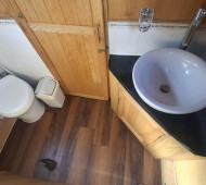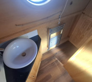 Windows: Black powder coated finish, square at front and portholes in bathroom and bedroom