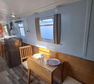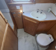 A well-presented 55ft cruiser stern narrowboat built in 2002 by S W Durham Steel, offering a practical and comfortable layout suited to both leisure cruising and liveaboard use. Constructed with a 10:6:4 steel hull, she benefits from a Beta 38 engine (serviced January 2025) with PRM 150 gearbox. The vessel was grit blasted, plug welded and epoxy coated in June 2023, and holds a Boat Safety Certificate valid to February 2030. Internally, the oak veneer fit-out features a convertible saloon, galley with gas cooking, and bathroom with pump-out toilet and shower. Heating is via a CastTec Nevis stove and Webasto diesel system (new 2023). Additional benefits include Victron inverter/charger, 780W solar array (2023), and 700L water tank. A solid, well-equipped boat ready to cruise.