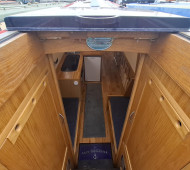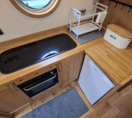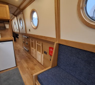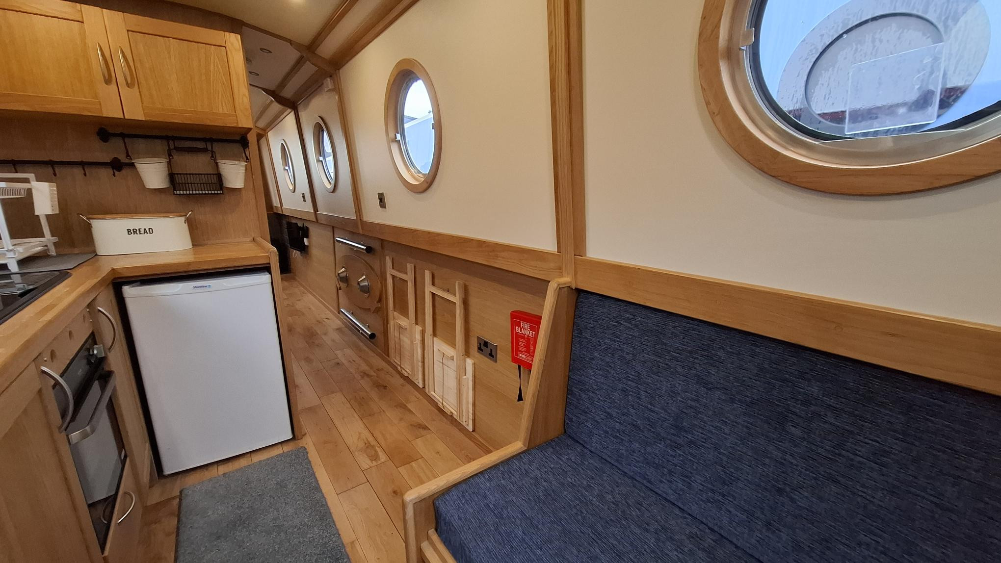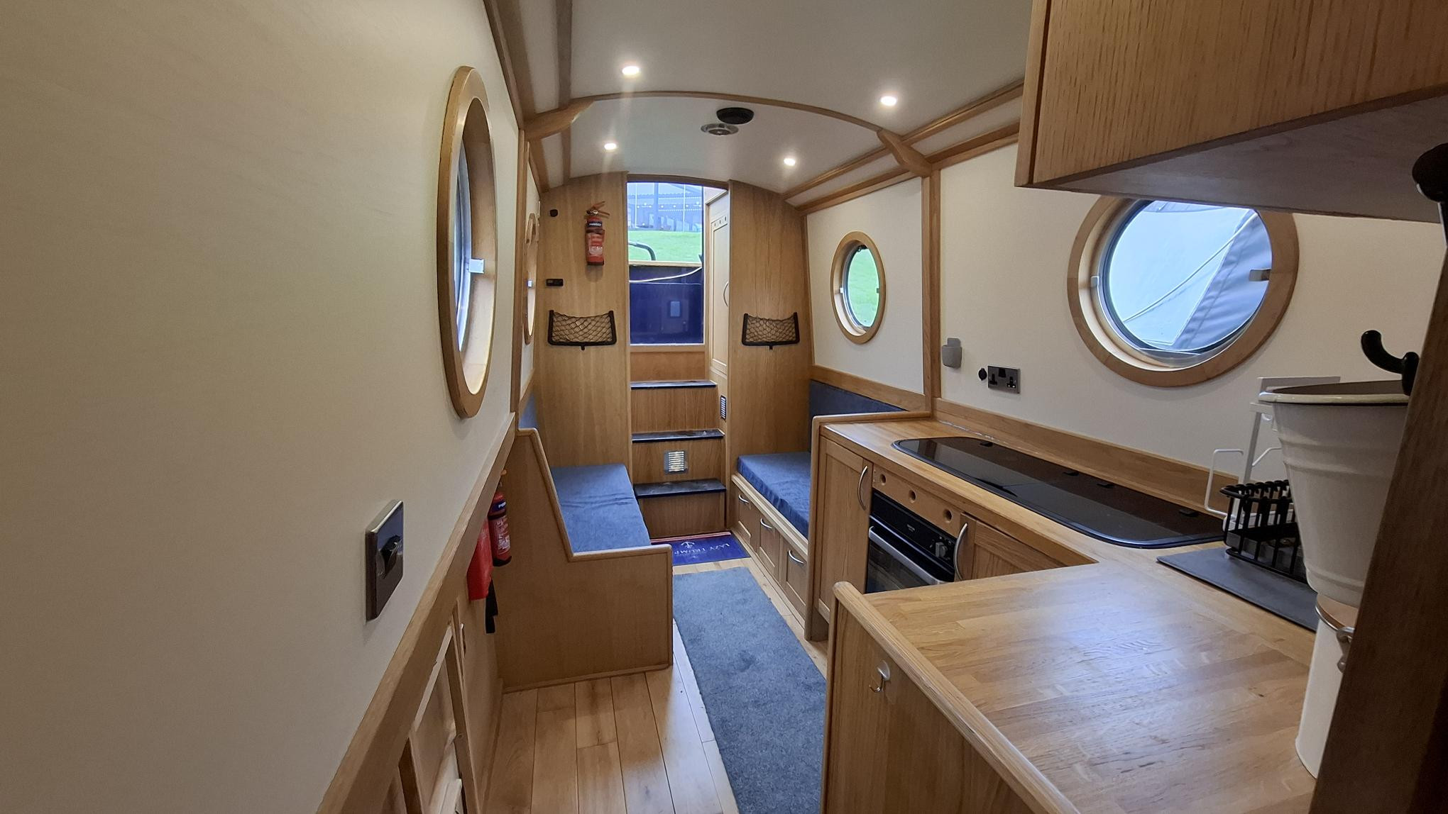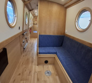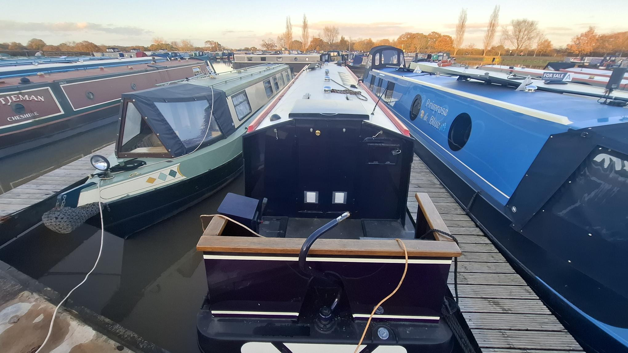 This beautifully presented 35ft Aintree Cruiser Stern, built and fitted out in 2021, offers an exceptional compact liveaboard or weekend cruiser experience. Powered by a low-hours Beta 25 engine with PRM gearbox and complemented by a quality oak fit-out, she blends craftsmanship with comfort. The stylish interior features wooden flooring, L-shaped dinette, Shoreline 12V fridge, Thetford cooker, and a smart wet-room with cassette toilet. Warmth is ensured by an Eberspacher diesel heater and MiFires stove. With Victron inverter, solar charging, and LED lighting, she’s ready for off-grid cruising. Finished in striking dark blue Epifanes enamel and freshly blacked in 2025, this turn-key narrowboat is in excellent condition and sold as seen – a superb opportunity to own a near-new Aintree classic.