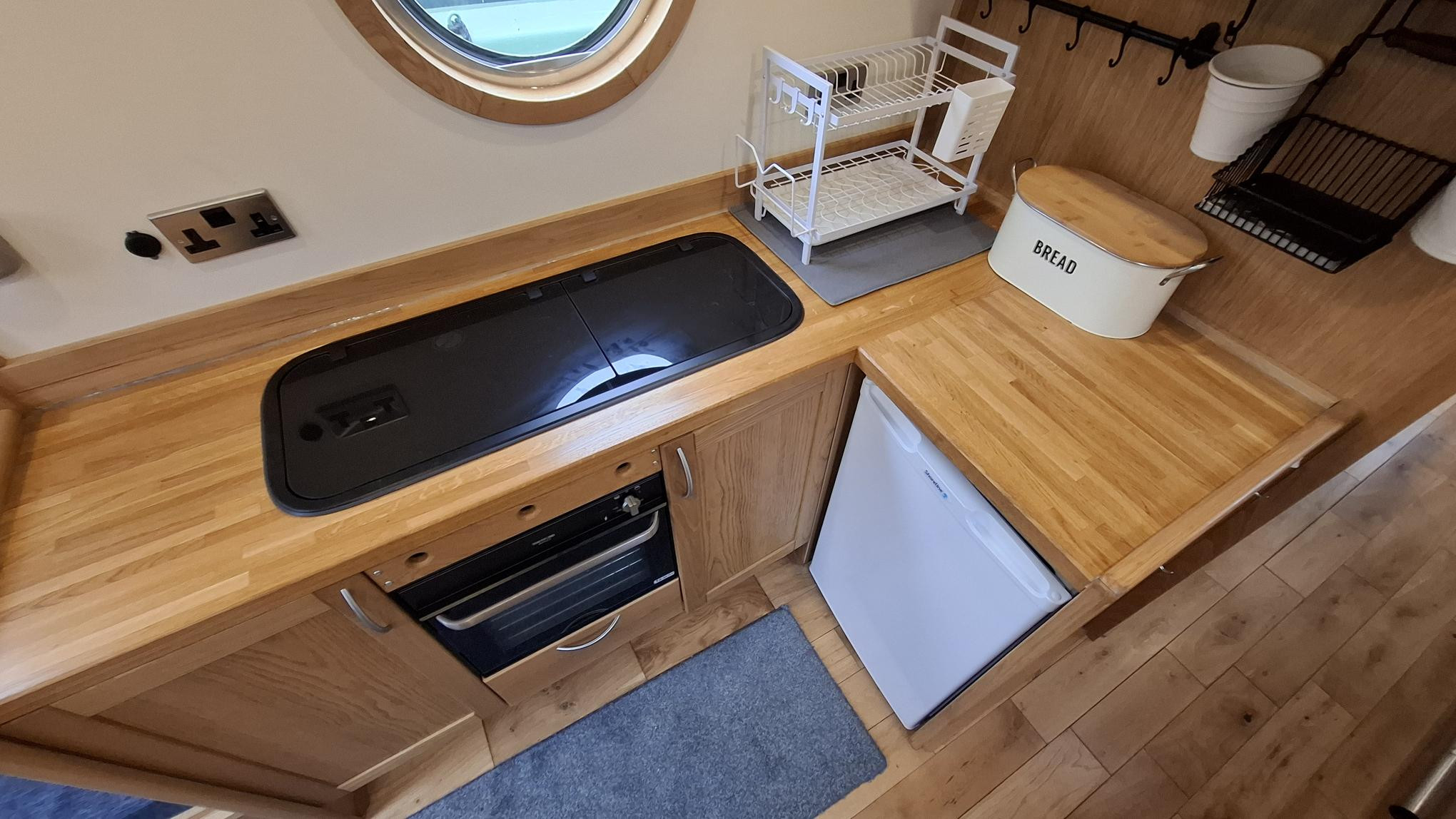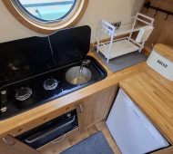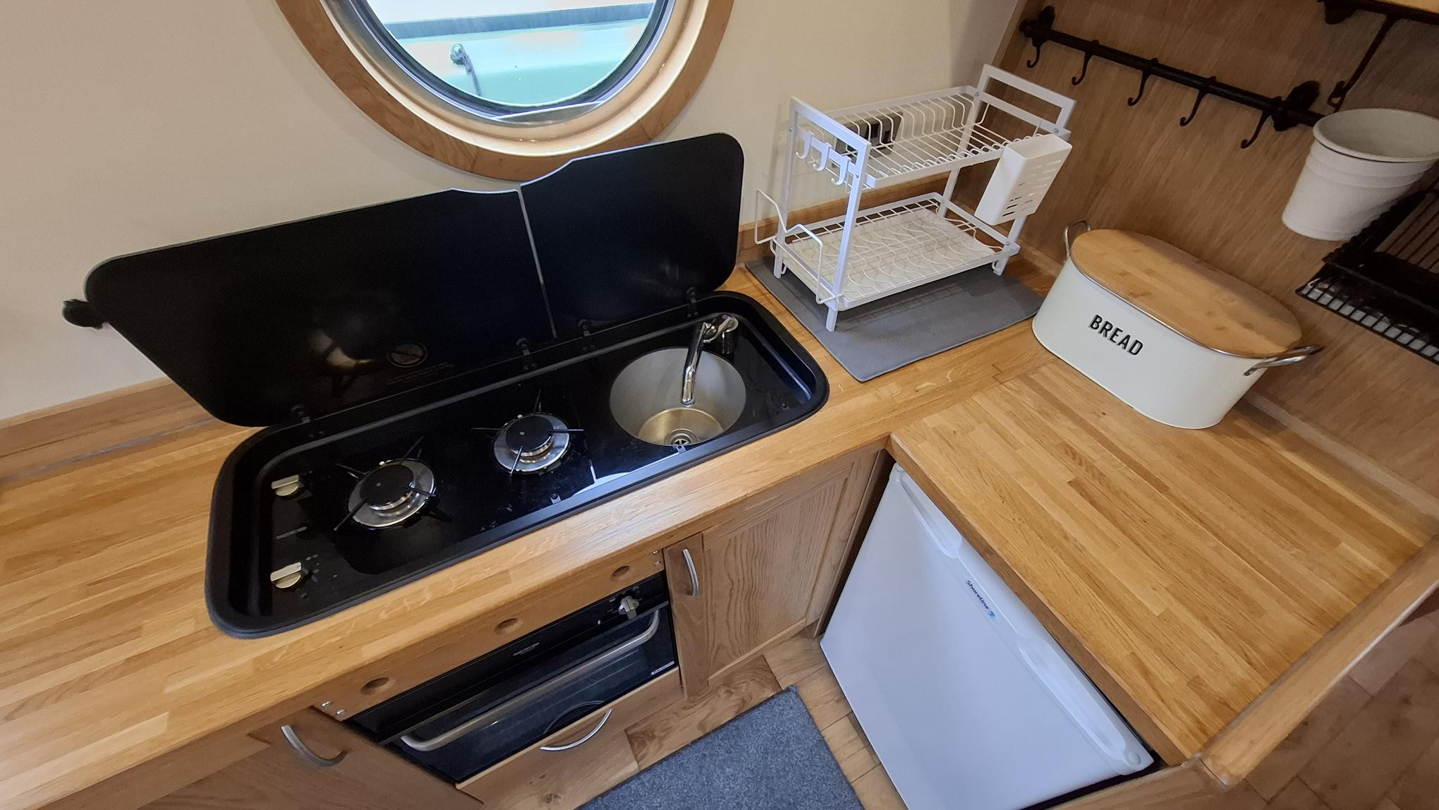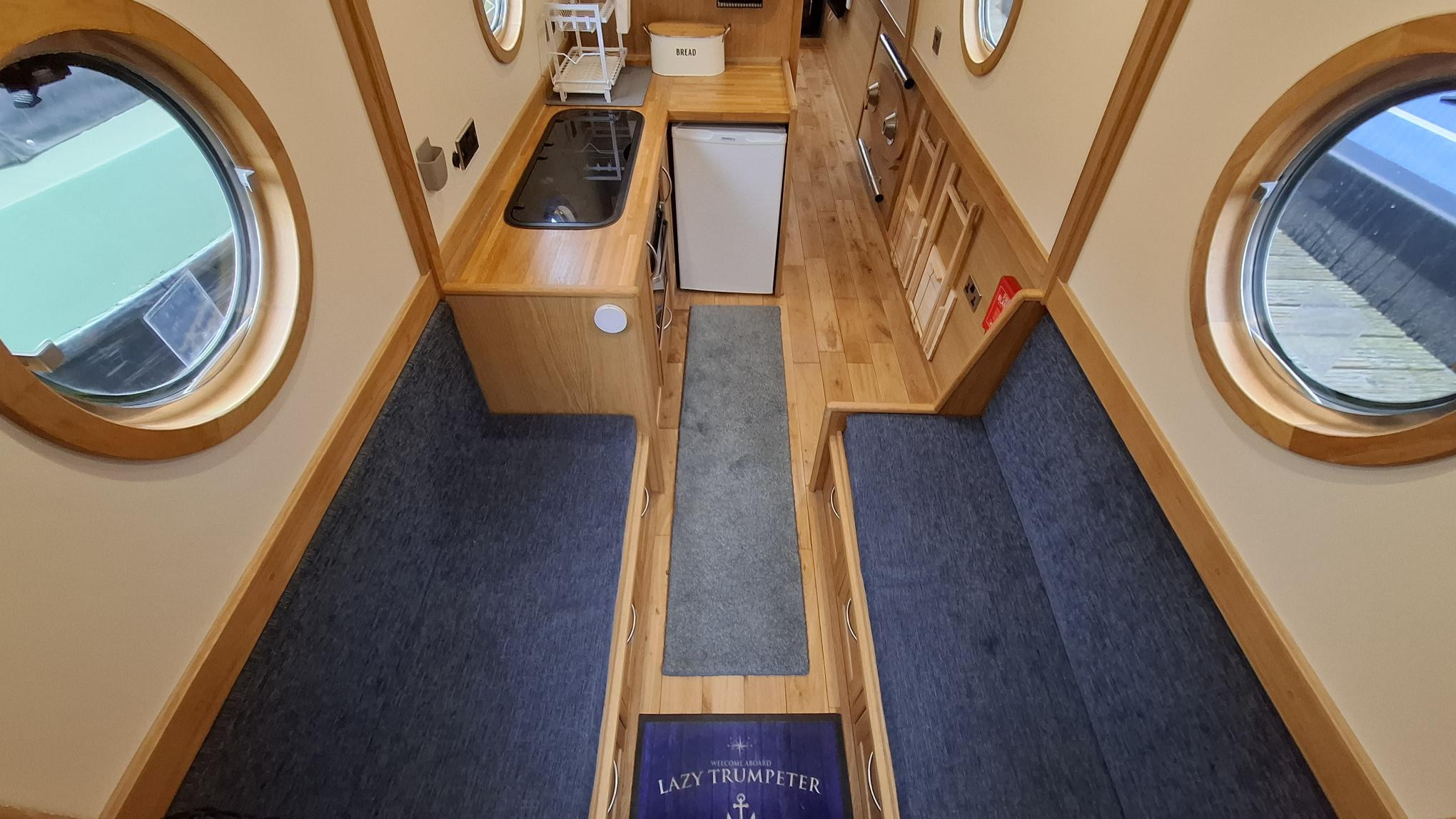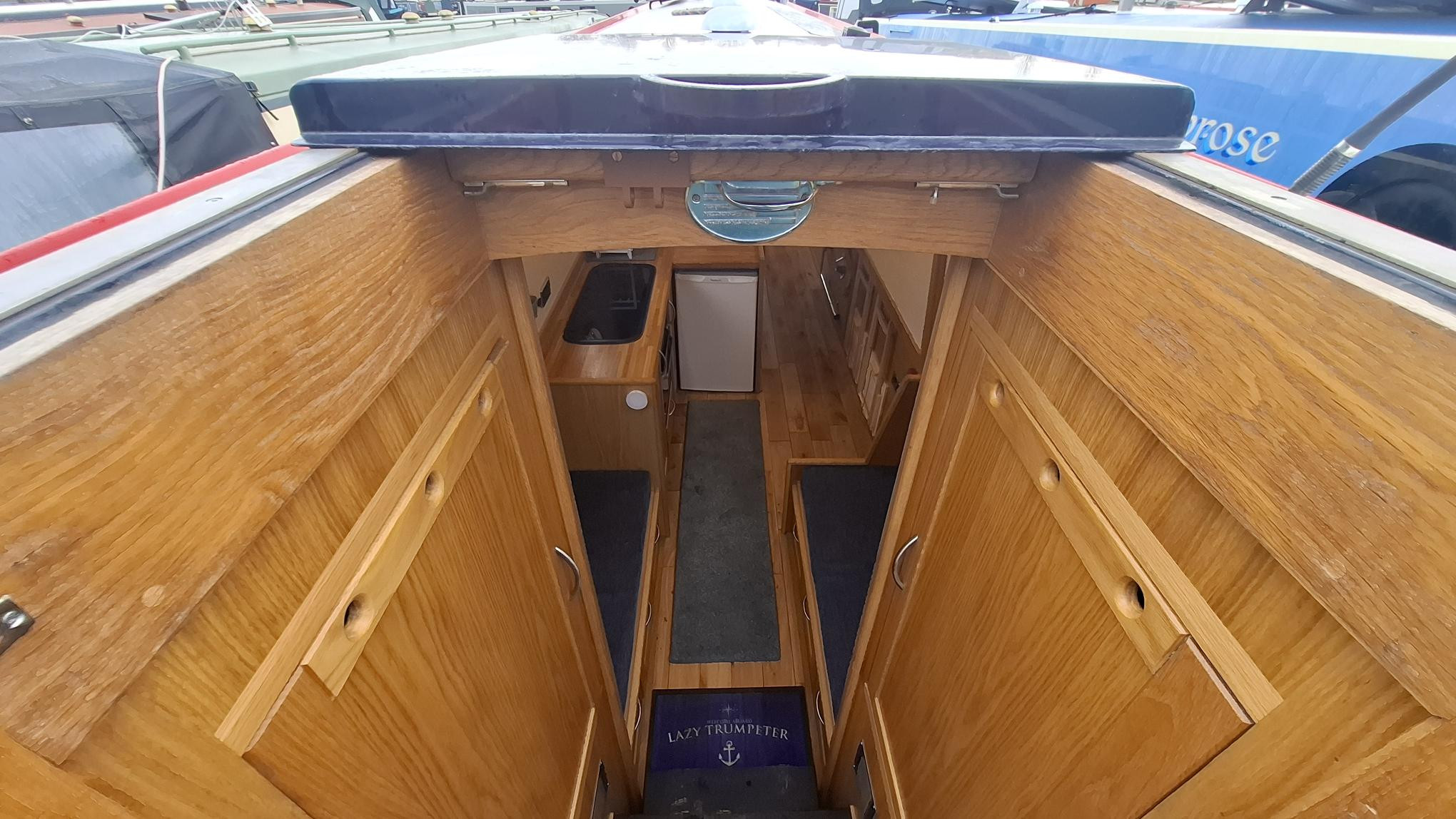 This beautifully presented 35ft Aintree Cruiser Stern, built and fitted out in 2021, offers an exceptional compact liveaboard or weekend cruiser experience. Powered by a low-hours Beta 25 engine with PRM gearbox and complemented by a quality oak fit-out, she blends craftsmanship with comfort. The stylish interior features wooden flooring, L-shaped dinette, Shoreline 12V fridge, Thetford cooker, and a smart wet-room with cassette toilet. Warmth is ensured by an Eberspacher diesel heater and MiFires stove. With Victron inverter, solar charging, and LED lighting, she’s ready for off-grid cruising. Finished in striking dark blue Epifanes enamel and freshly blacked in 2025, this turn-key narrowboat is in excellent condition and sold as seen – a superb opportunity to own a near-new Aintree classic.