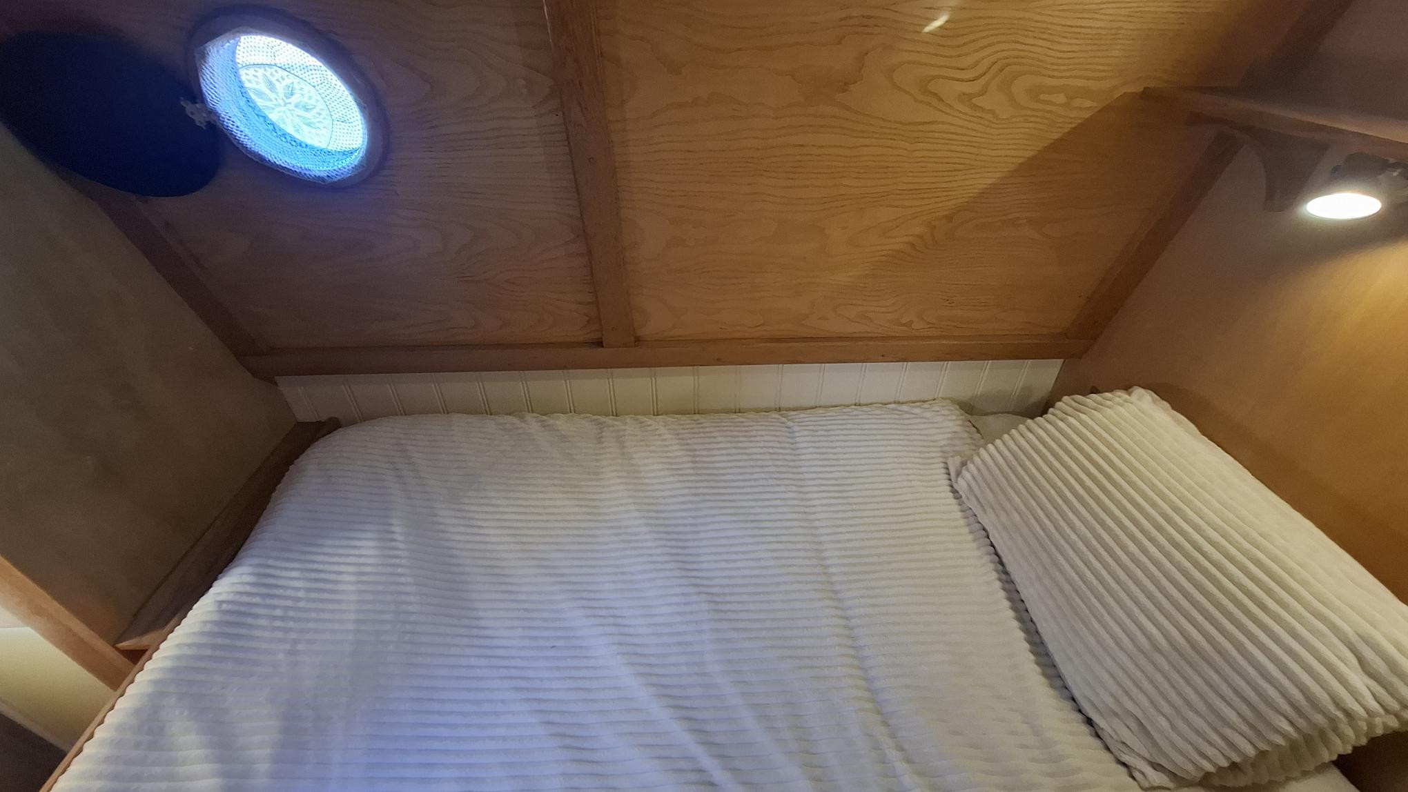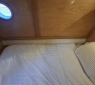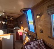 Inside, Lichen Lady feels warm and inviting, with quality woodwork, generous living space, and flexible accommodation for up to eight. Thoughtful design features, multiple side doors, and abundant storage enhance practicality for life aboard.