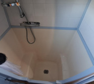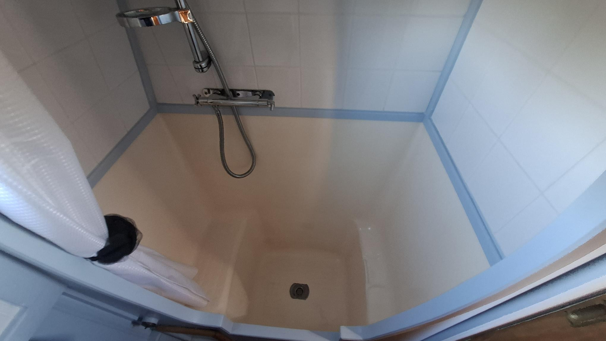 Shower: Hip bath with overhead shower cubicle