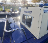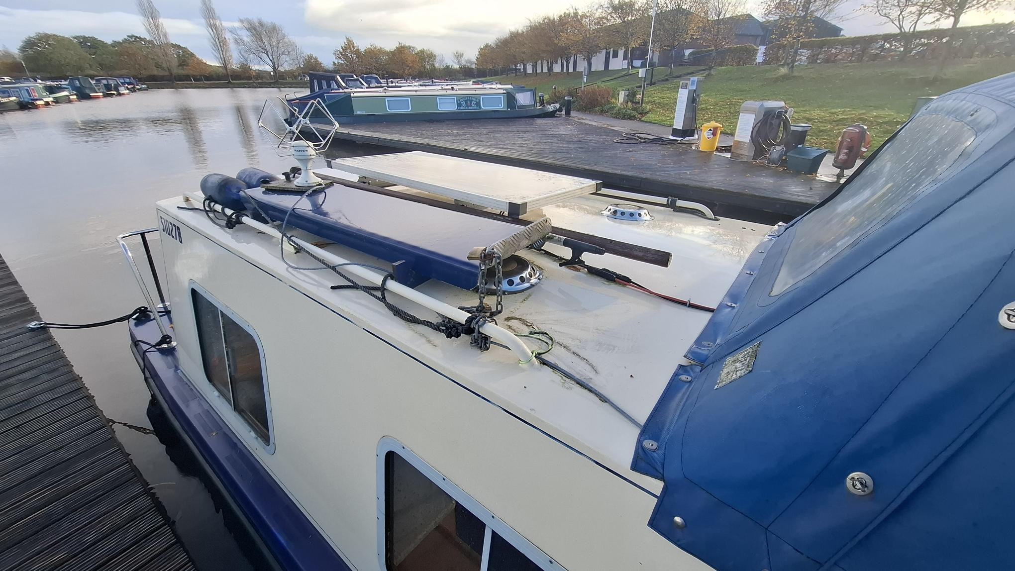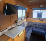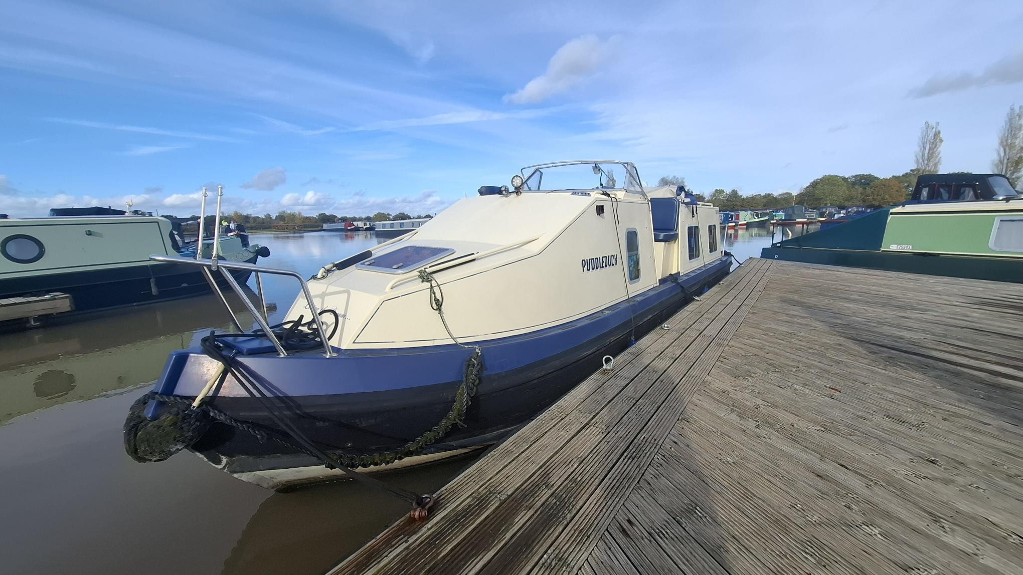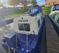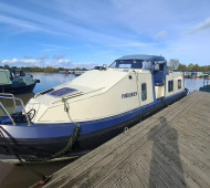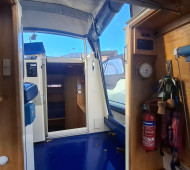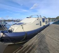 A beautifully presented 32ft aluminum Sea Otter narrowboat with the sought-after centre cockpit layout. Built and fitted out by Sea Otter in 2003, this well-maintained craft offers comfortable two-berth accommodation, ideal for couples or solo cruising. Powered by a reliable Nanni 21hp diesel engine (serviced March 2025) with TMC gearbox. The interior features ash-faced ply, a well-equipped galley with gas oven, hob and 12V Shoreline fridge, wet room shower and Thetford cassette toilet. Webasto diesel hot air heating, calorifier with immersion, and 230V shore power ensure year-round comfort. Cosmetic blacking in 2023, BSS valid to July 2027. A lightweight, low-maintenance aluminum boat – easy to handle and ready to cruise. Sold as seen.