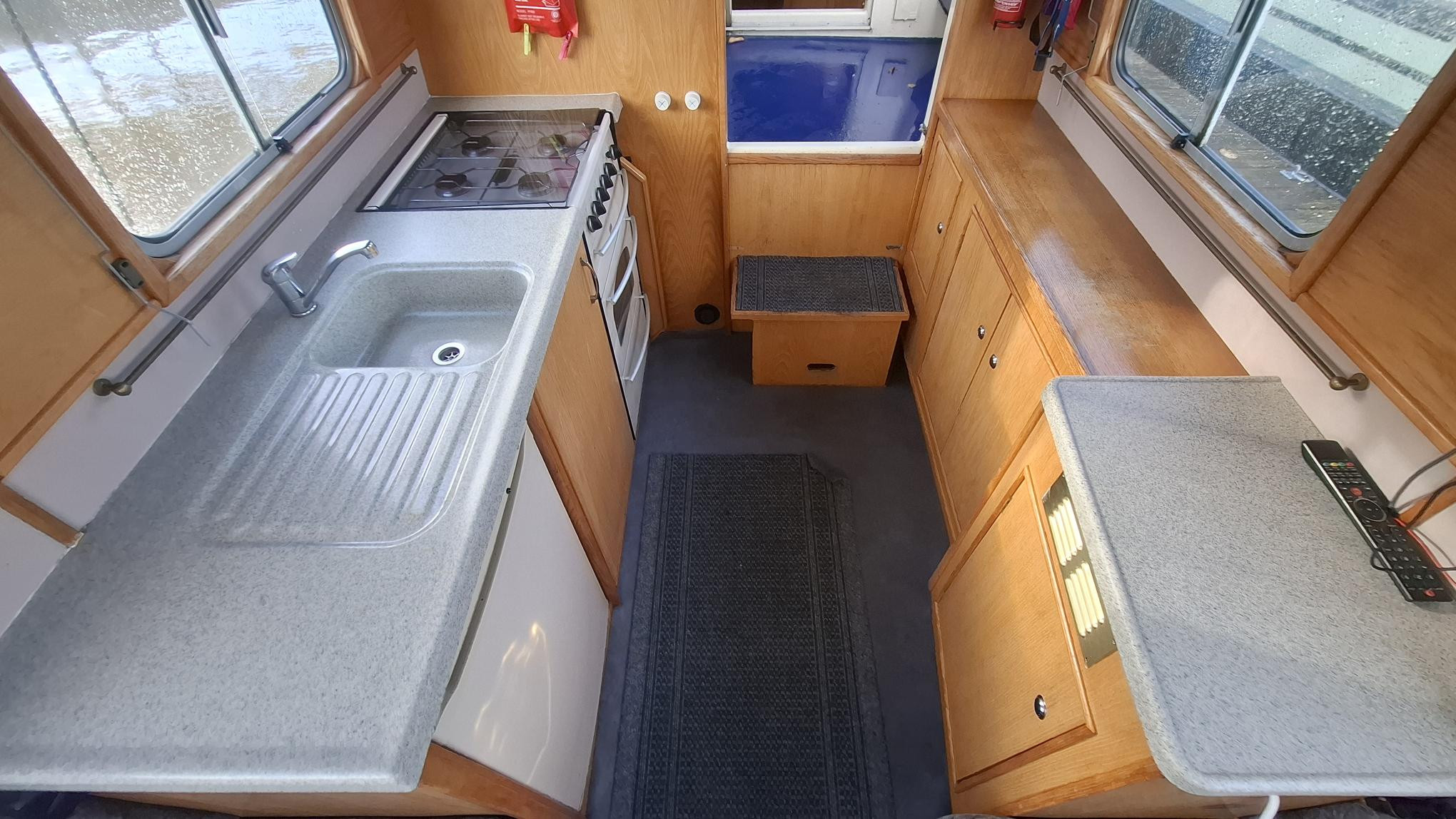 Galley Worktops: Grey speckled Corian