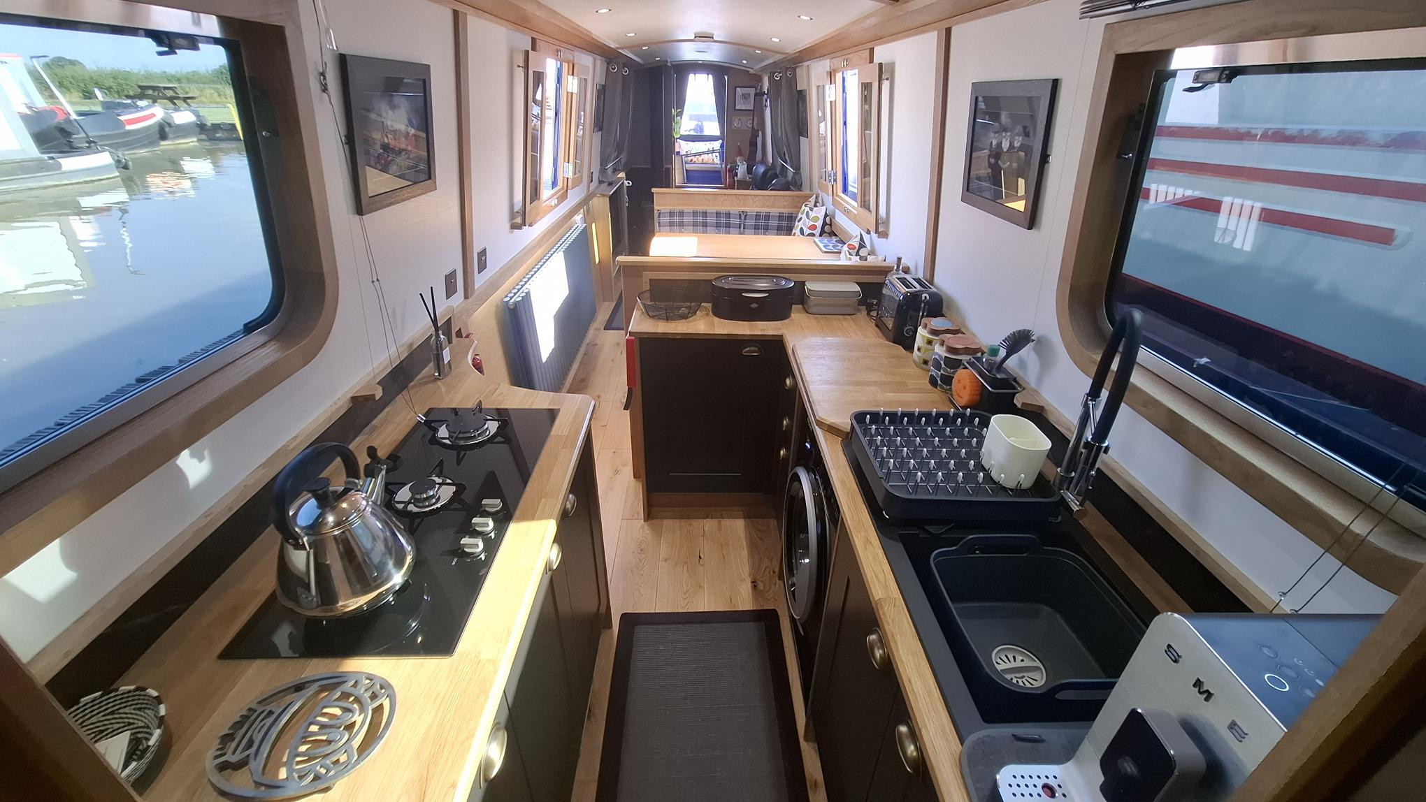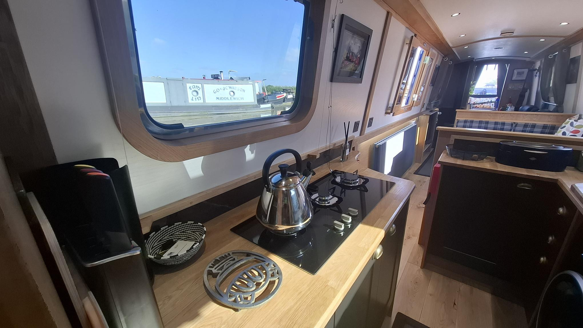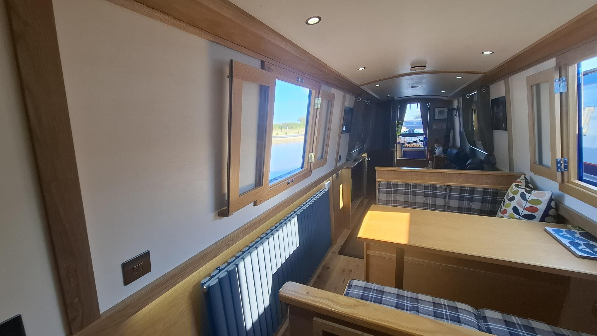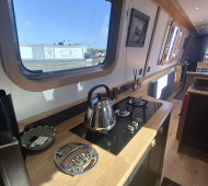 This beautifully crafted 57ft 2022 narrowboat is an exceptional example of modern design meeting traditional craftsmanship. Built by Cauldon Boats and expertly fitted out by Knights Narrow Boats, it boasts a premium oak veneer interior, engineered oak flooring, and a fully equipped galley with solid oak worktops. The Beta Marine 43 engine, bowthruster, and 4-panel solar setup ensure effortless cruising and off-grid capability. Comfort is paramount, with Webasto diesel heating, a Morso stove, and thoughtful touches like under-gunwale lighting. Recent grit-blasting and 2-pack epoxy blacking (Nov 2024) reflect meticulous maintenance. With a practical layout offering 2+2 berths, quality appliances, and a full suite of modern electrics including a Victron 3kW inverter, this boat is perfectly suited for liveaboard or long-term cruising. A turn-key, high-spec floating home.