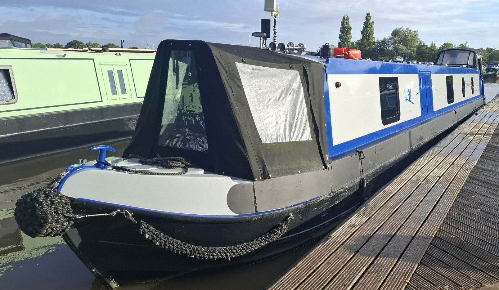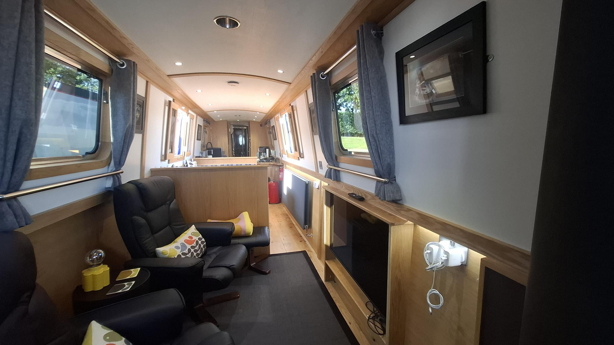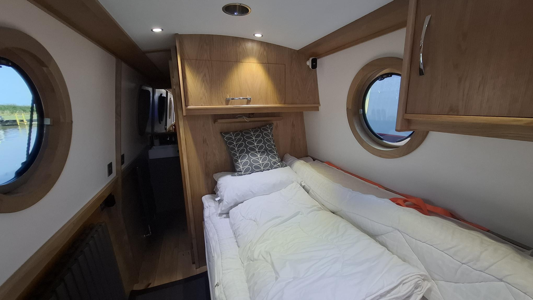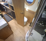This beautifully crafted 57ft 2022 narrowboat is an exceptional example of modern design meeting traditional craftsmanship. Built by Cauldon Boats and expertly fitted out by Knights Narrow Boats, it boasts a premium oak veneer interior, engineered oak flooring, and a fully equipped galley with solid oak worktops. The Beta Marine 43 engine, bowthruster, and 4-panel solar setup ensure effortless cruising and off-grid capability. Comfort is paramount, with Webasto diesel heating, a Morso stove, and thoughtful touches like under-gunwale lighting. Recent grit-blasting and 2-pack epoxy blacking (Nov 2024) reflect meticulous maintenance. With a practical layout offering 2+2 berths, quality appliances, and a full suite of modern electrics including a Victron 3kW inverter, this boat is perfectly suited for liveaboard or long-term cruising. A turn-key, high-spec floating home.