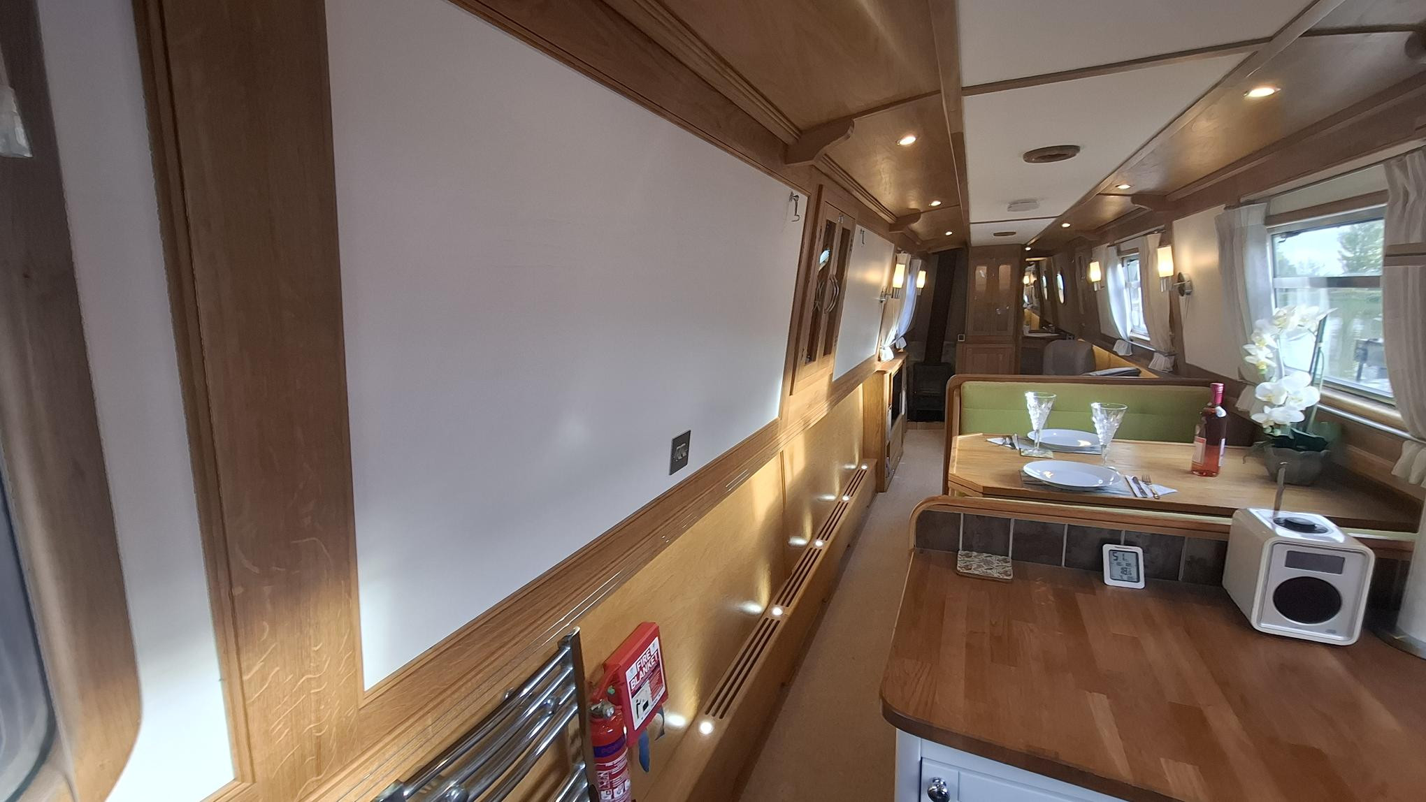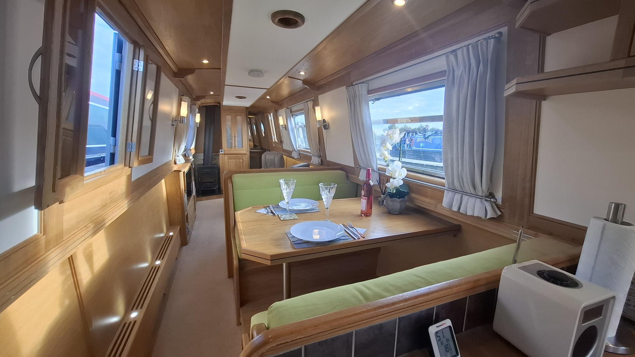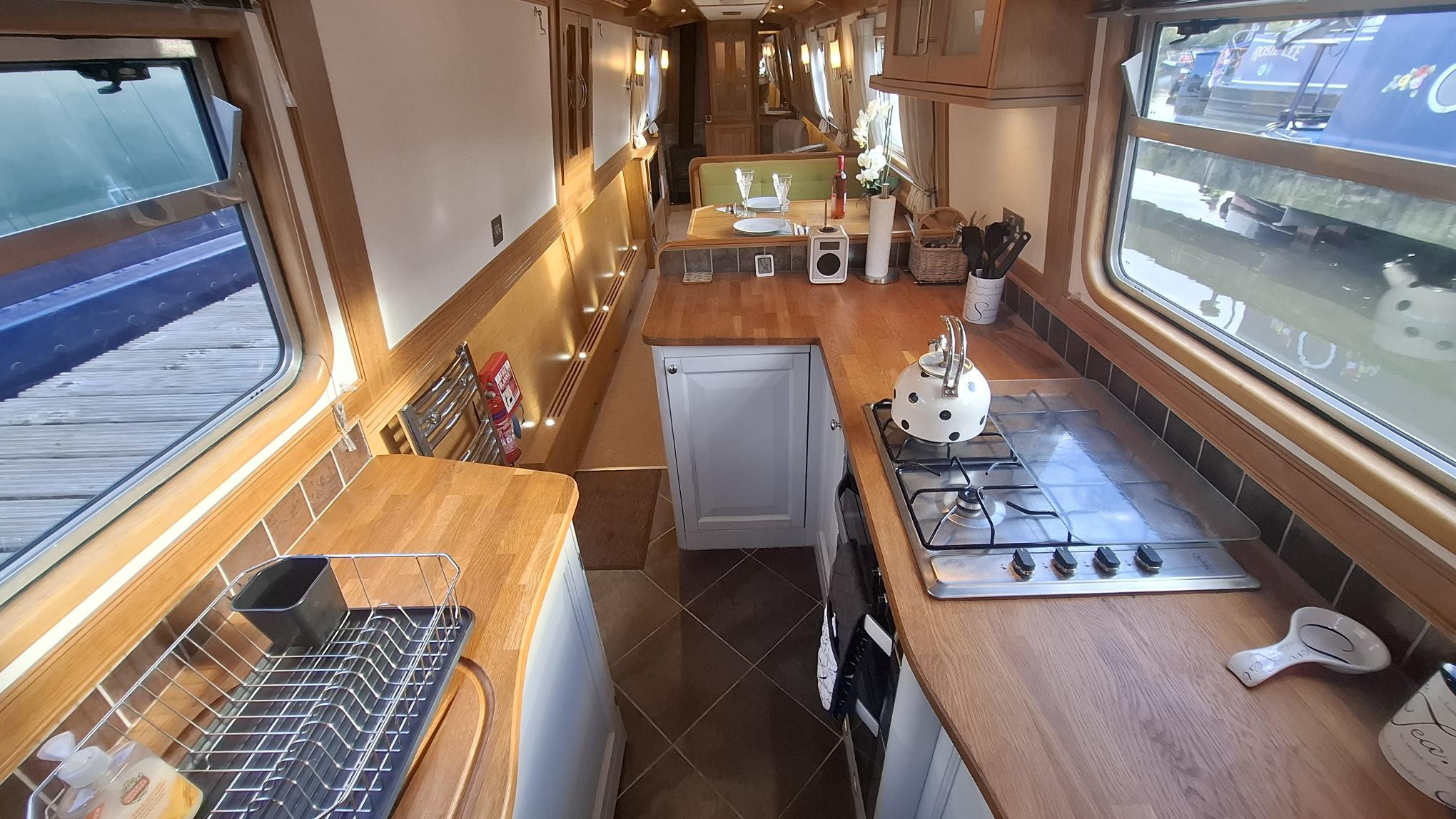 This beautifully crafted 62’ Aqualine narrowboat is a true standout on the brokerage market. Built in 2017 with a semi-traditional stern, she offers a luxurious oak fit-out, solid wood worktops, and a thoughtfully designed layout perfect for liveaboard or extended cruising. The Barrus Shire 45 engine has only 450 hours and was recently serviced, while the hull was freshly blacked in October 2024. Comfort is guaranteed with Webasto central heating, a quadrant shower, and a pullman dinette that converts to a double berth. The electrical system is top-tier, featuring a Victron 3000W inverter/charger and 600Ah AGM batteries. With her elegant grey, red, and black paintwork, quality insulation, and exceptional care, this vessel is truly turn-key. Early viewing is highly recommended.