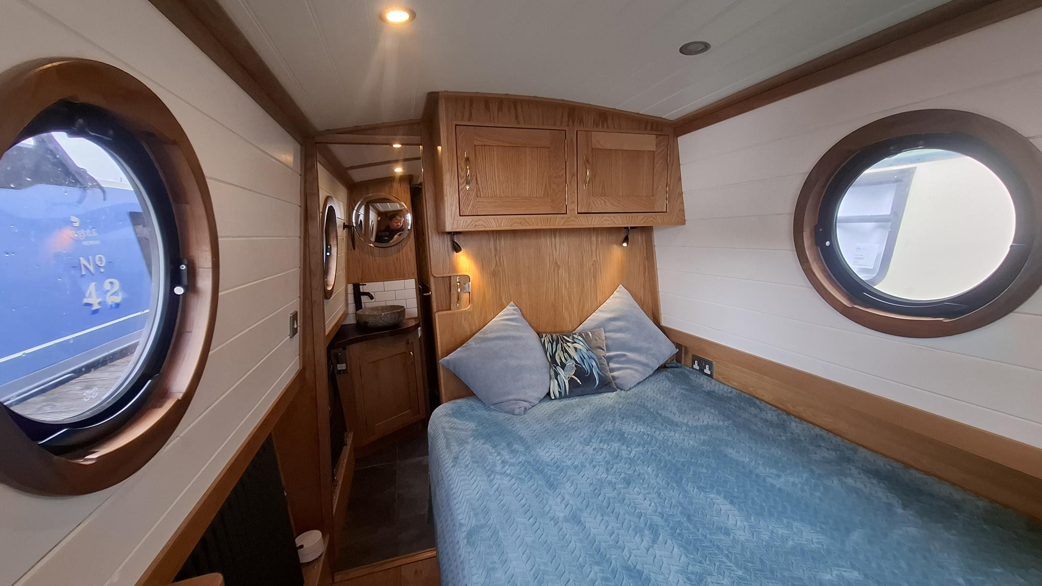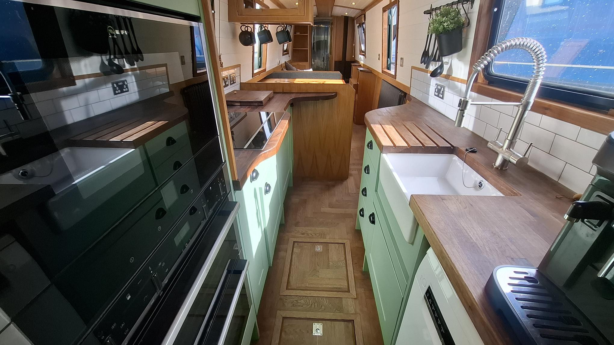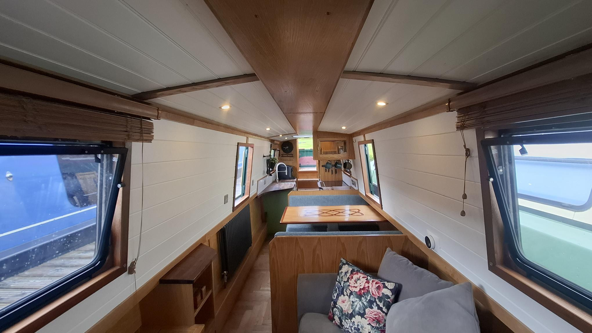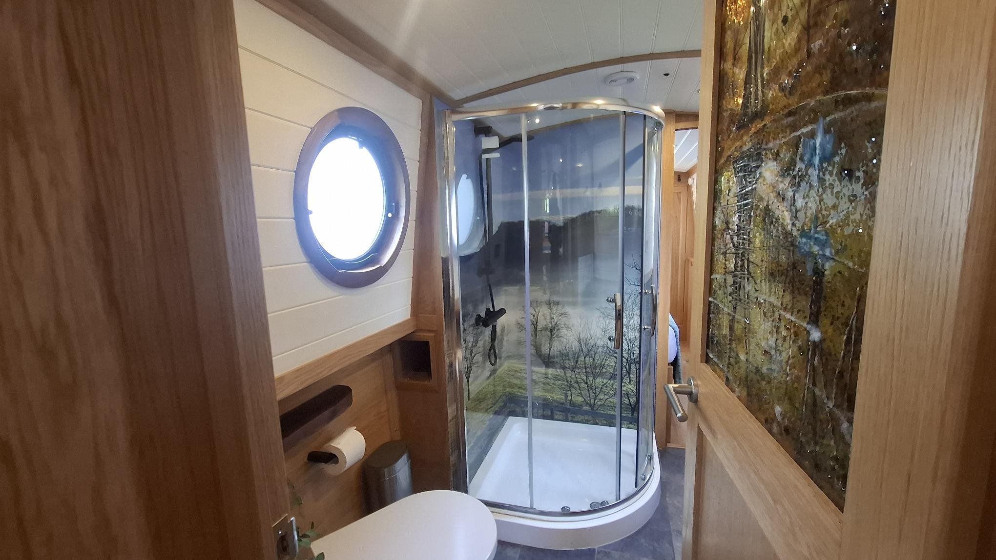 Boldly redefining inland cruising, UISCE BEO is a 58ft hybrid cruiser stern narrowboat built in 2023 for effortless exploration and luxurious off-grid living. Her advanced Hybrid Marine diesel-electric system delivers near-silent cruising with impressive efficiency, supported by a formidable lithium battery bank and expansive solar array—true energy independence .Inside, contemporary elegance meets practical design: American light oak finishes, oak flooring, a versatile dinette, and a beautifully appointed galley with premium appliances. The spacious bathroom features underfloor heating and a large walk-in shower, while diesel heating ensures year-round comfort. Gas-free, technologically equipped, and meticulously specified throughout, UISCE BEO is a rare opportunity to own a future-forward narrowboat—equally at home on remote waterways or refined marina moorings