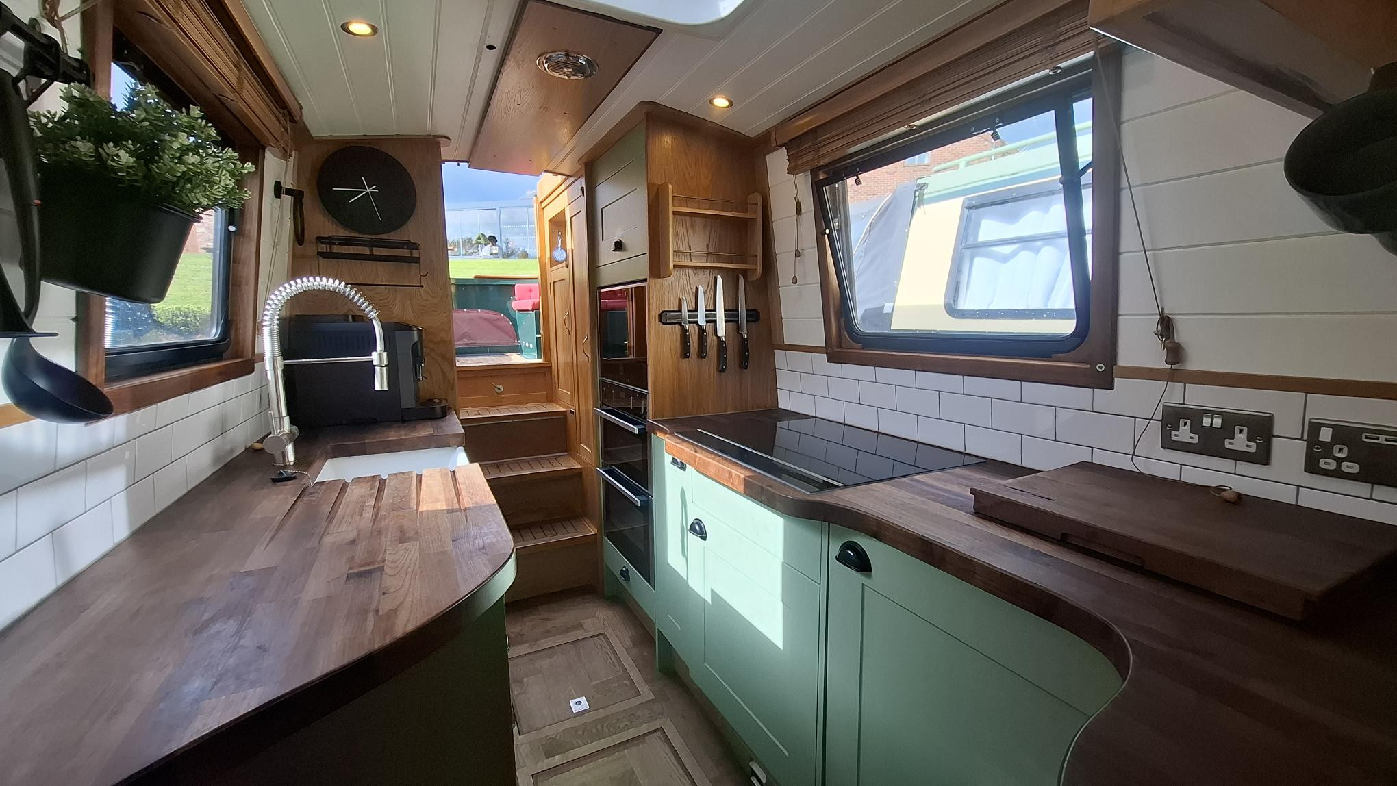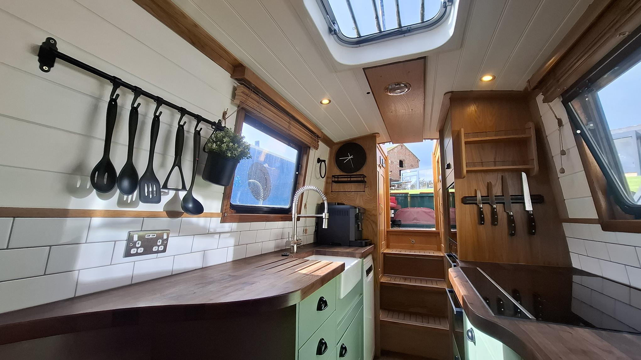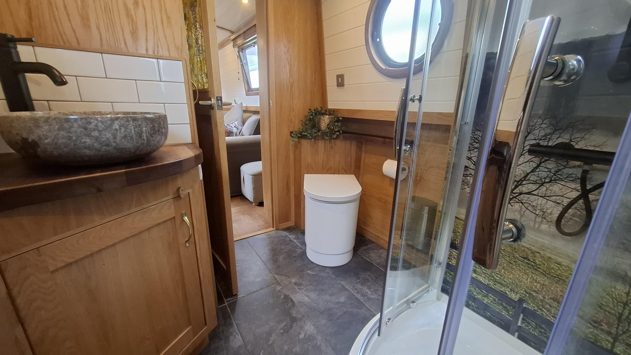 Boldly redefining inland cruising, UISCE BEO is a 58ft hybrid cruiser stern narrowboat built in 2023 for effortless exploration and luxurious off-grid living. Her advanced Hybrid Marine diesel-electric system delivers near-silent cruising with impressive efficiency, supported by a formidable lithium battery bank and expansive solar array—true energy independence .Inside, contemporary elegance meets practical design: American light oak finishes, oak flooring, a versatile dinette, and a beautifully appointed galley with premium appliances. The spacious bathroom features underfloor heating and a large walk-in shower, while diesel heating ensures year-round comfort. Gas-free, technologically equipped, and meticulously specified throughout, UISCE BEO is a rare opportunity to own a future-forward narrowboat—equally at home on remote waterways or refined marina moorings