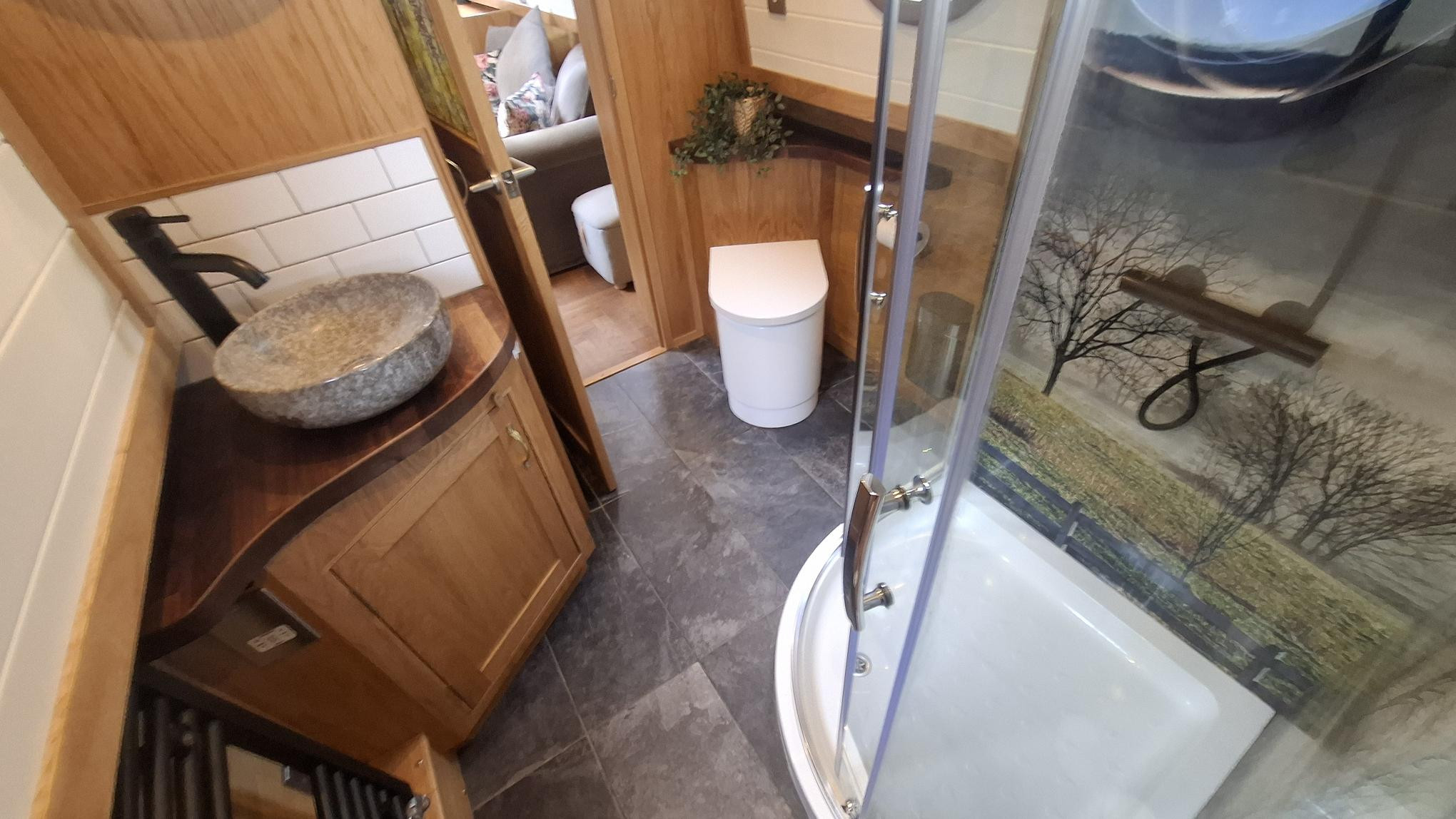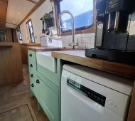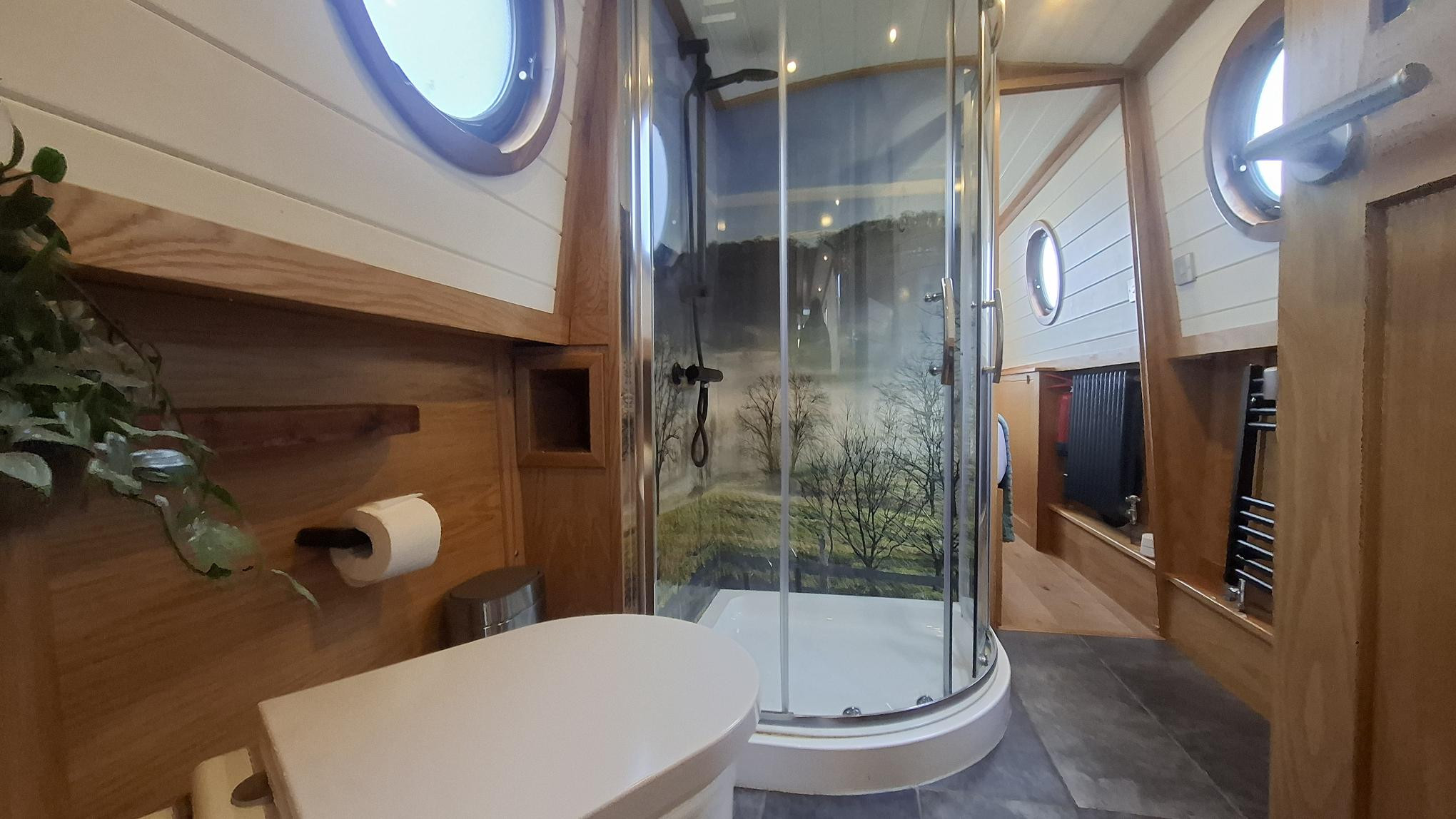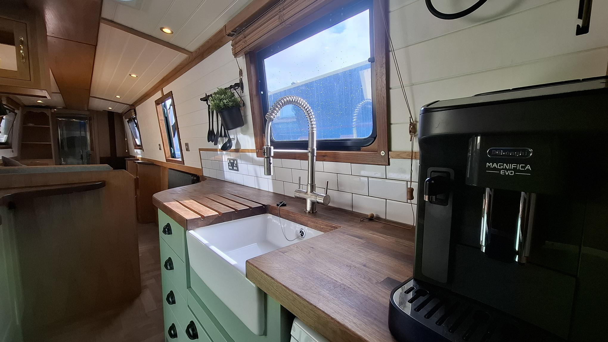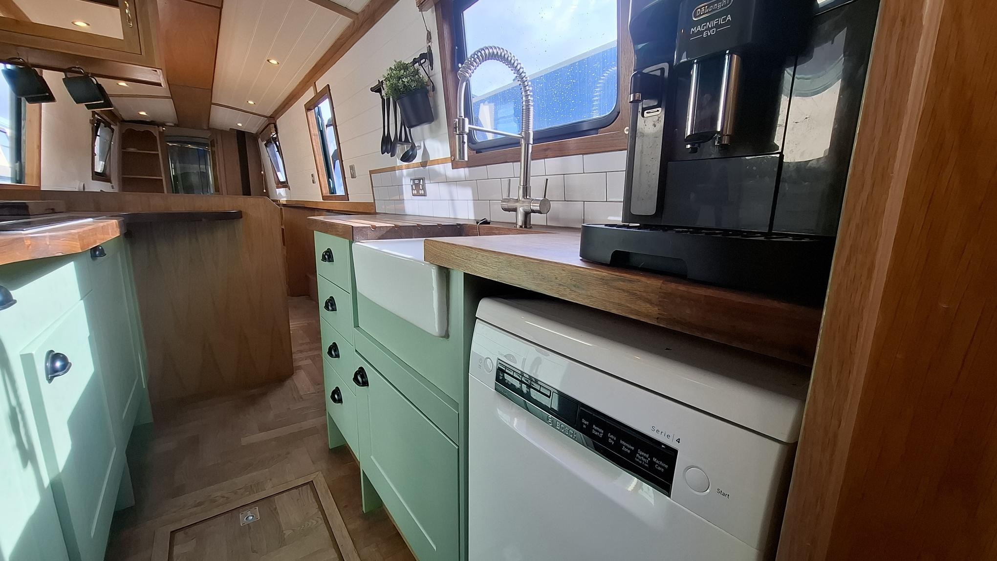 Boldly redefining inland cruising, UISCE BEO is a 58ft hybrid cruiser stern narrowboat built in 2023 for effortless exploration and luxurious off-grid living. Her advanced Hybrid Marine diesel-electric system delivers near-silent cruising with impressive efficiency, supported by a formidable lithium battery bank and expansive solar array—true energy independence .Inside, contemporary elegance meets practical design: American light oak finishes, oak flooring, a versatile dinette, and a beautifully appointed galley with premium appliances. The spacious bathroom features underfloor heating and a large walk-in shower, while diesel heating ensures year-round comfort. Gas-free, technologically equipped, and meticulously specified throughout, UISCE BEO is a rare opportunity to own a future-forward narrowboat—equally at home on remote waterways or refined marina moorings