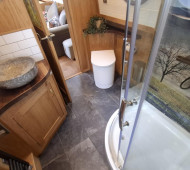 Shower: Electric Underfloor heating with large 900mm shomer, chrome riser with thermostatic mixing tap on shower