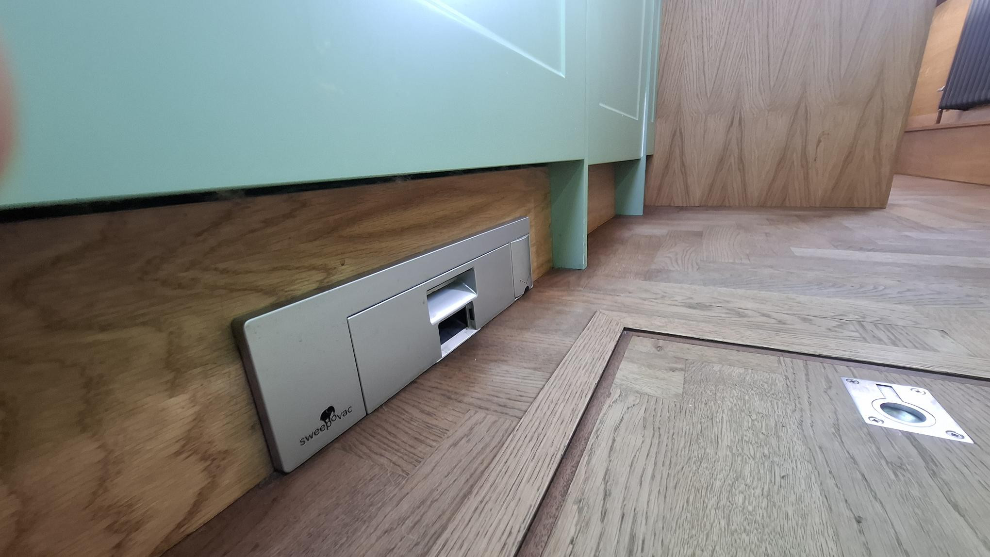 Fridge/Freezer: Integrated Fridge with large chest freezer under dinette